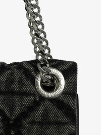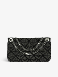 Clutch in denim with sliding metal chain and signature wings. Description & details - Pochette in stonewashed and quilted denim with monogram animation - Sliding metal chain with signature eyelets - Zip closure with signature wings puller - Flat back pocket with magnetic closure - Patch interior pocket - Embossed wings signature - Shoulder or cross-body wear 27 x 12 cm Composition 60% Cotton** 40% Cotton Product code: LWBA04079_ROAD