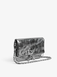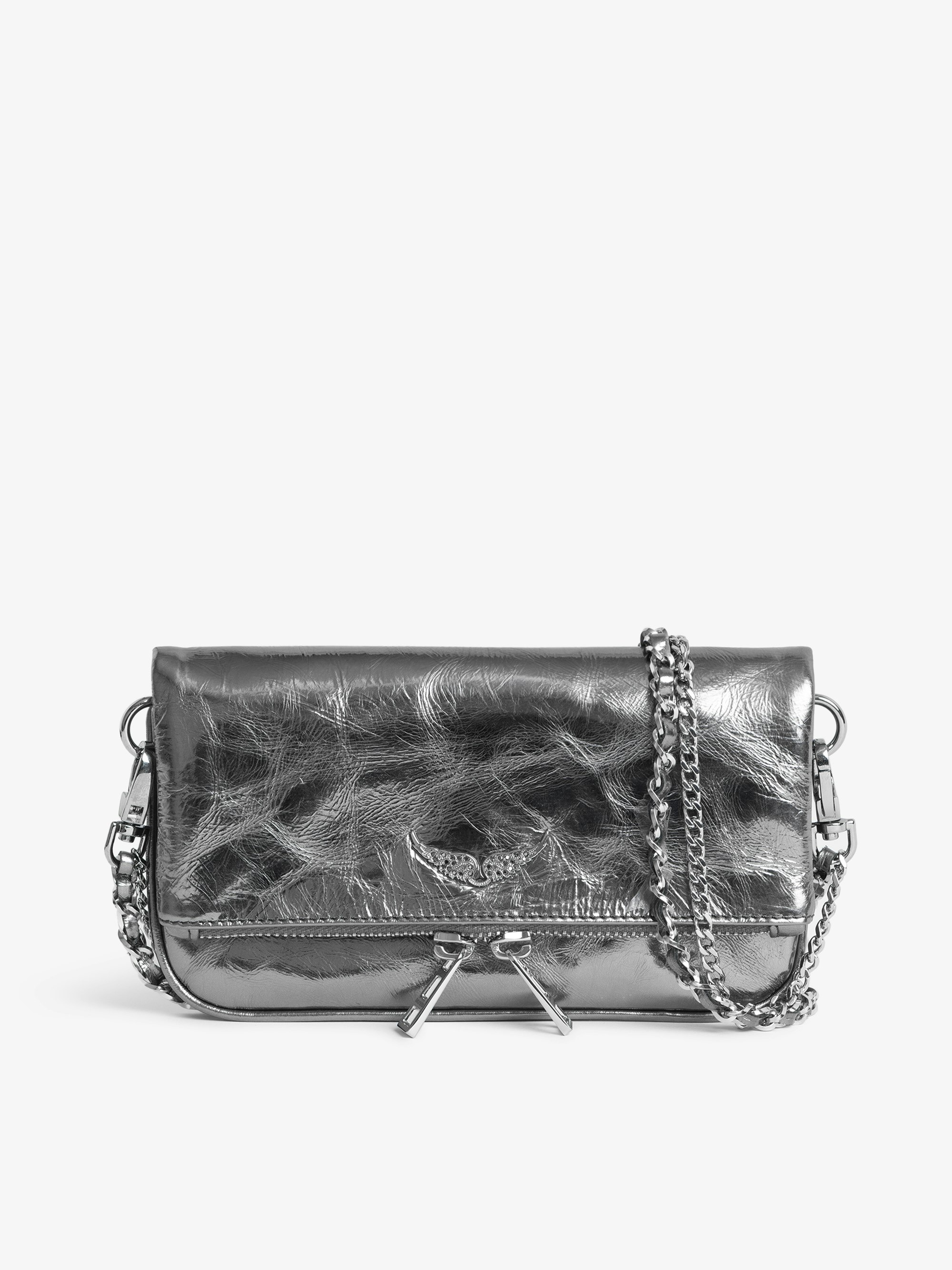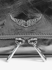 Metallic leather clutch with signature rhinestone-embellished wings. Description & details - Metallic leather clutch - Two removable chains, one interwoven with leather and one in metal - Flap with zip and magnetic closure - Small back zip pocket and interior patch pocket - Signature rhinestone-embellished wings - Worn by hand, shoulder or cross-body - Can hold a mobile phone with a dimension of 6.1 inches or less (for example: can hold an iPhone 12/13/14/15) 11 x 2 cm Composition 100% Cow leather Care - Protect your leather item from humidity and any source of heat (radiator, sun) - Avoid your item coming into contact with water - Regularly care for your leather item using a colourless nourishing cream for leather, suitable for leather goods - Ensure you wear your item with similar colours - Avoid overfilling your bag to ensure its durability - In case of stains, contact a leather professional Product code: LWBA04155_GUN