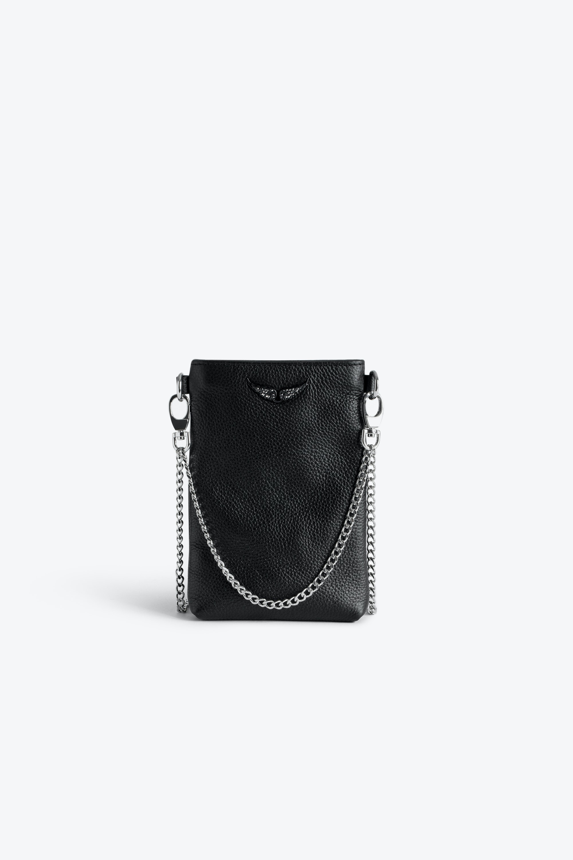 Women’s black grained leather phone pouch with chains and diamanté wings charm. Description & details - Women’s black grained leather phone pouch - Shoulder strap with removable double metal chains - 3 card slots on inside and one zipped pocket on outside at back - Tone-on-tone diamanté wings charm Width x Height: 11 x 17 cm Composition 100% COW LEATHER Care - Protect your leather item from humidity and any source of heat (radiator, sun) - Avoid your item coming into contact with water - Regularly care for your leather item using a colourless nourishing cream for leather, suitable for leather goods - Ensure you wear your item with similar colours - Avoid overfilling your bag to ensure its durability - In case of stains, contact a leather professional Product code: LWSG01193_NOIR