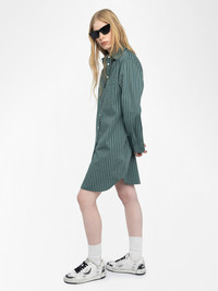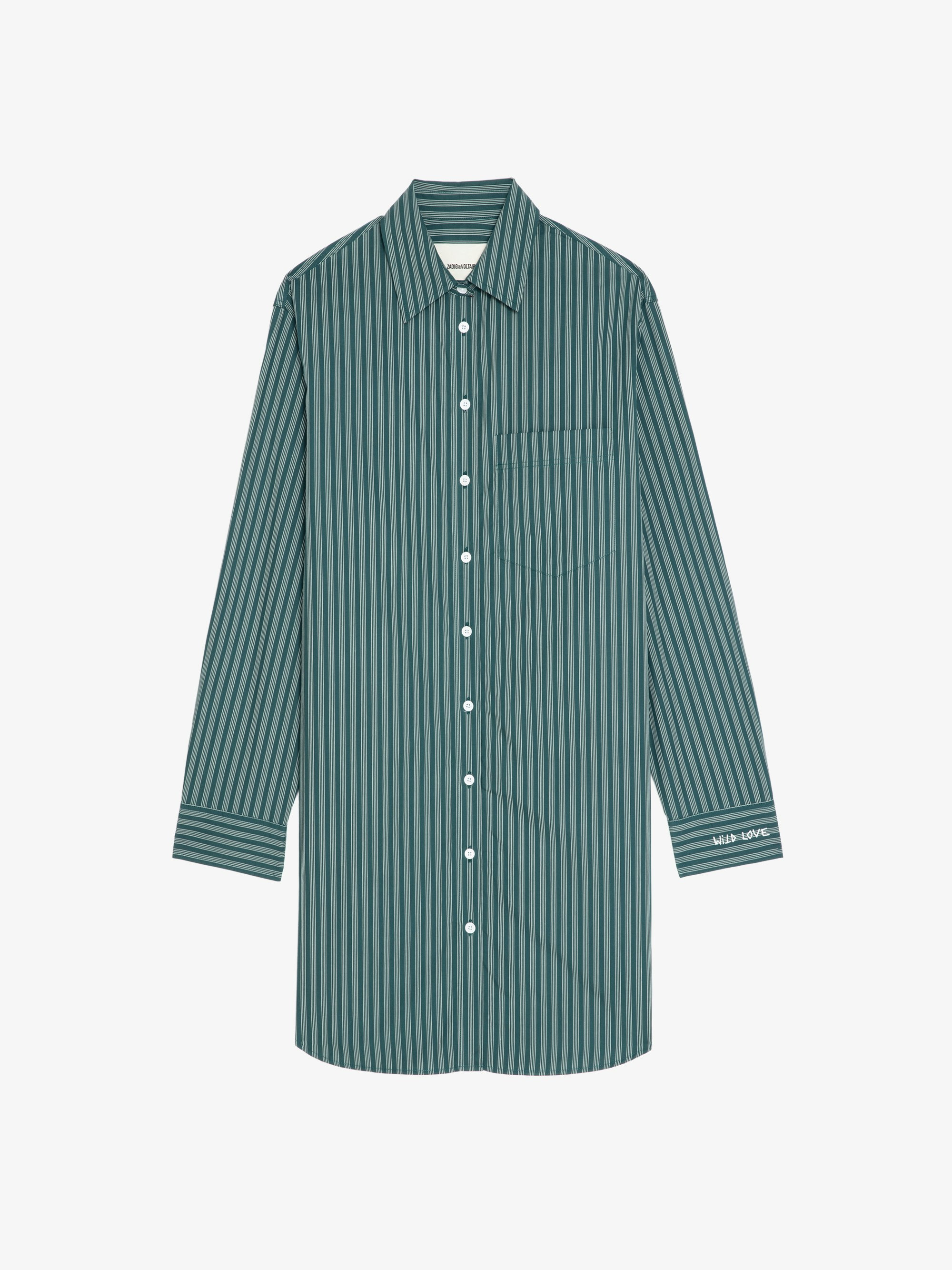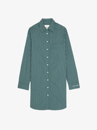 Striped poplin shirt dress with embroidered cuffs. Description & details - Shirt dress in 100% cotton - Striped poplin - Classic collar - Long sleeves - Button fastening - Patch pockets - Embroidery on cuffs Model is 177 cm / 5' 9" and is wearing a size S This item fits true to size. Choose your usual size. Composition 100% Cotton* Care - Machine-wash inside out on a 30°C delicate cycle with similar colours - Air dry - Iron inside out at a maximum of 110°C, avoiding any customised details Product code: WWDR02579_EMERALD