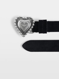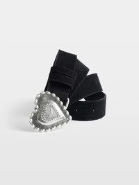 30 mm suede belt with signature Crush buckle. Description & details - Leather belt - Adjustable with 5 holes - Signature wings buckle - Width 30 mm 90 x 3.5 cm Composition 100% Cow leather Care - Protect your leather item from humidity and any source of heat (radiator, sun) - Avoid your item coming into contact with water - Regularly care for your leather item using a colourless nourishing cream for leather, suitable for leather goods - Ensure you wear your item with similar colours - Avoid overfilling your bag to ensure its durability - In case of stains, contact a leather professional Product code: LWBT01356_BLACK