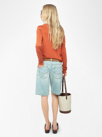 Long-sleeved knit top with wing closure. Description & details - Sweater - V-neck with wing brooch closure - Long sleeves Model is 175 cm / 5' 8" and is wearing a size S This item fits true to size. Choose your usual size. Composition 53% Viscose 47% Cotton** Care This garment should be dry-cleaned only. Product code: KWSW02794_SIENNA