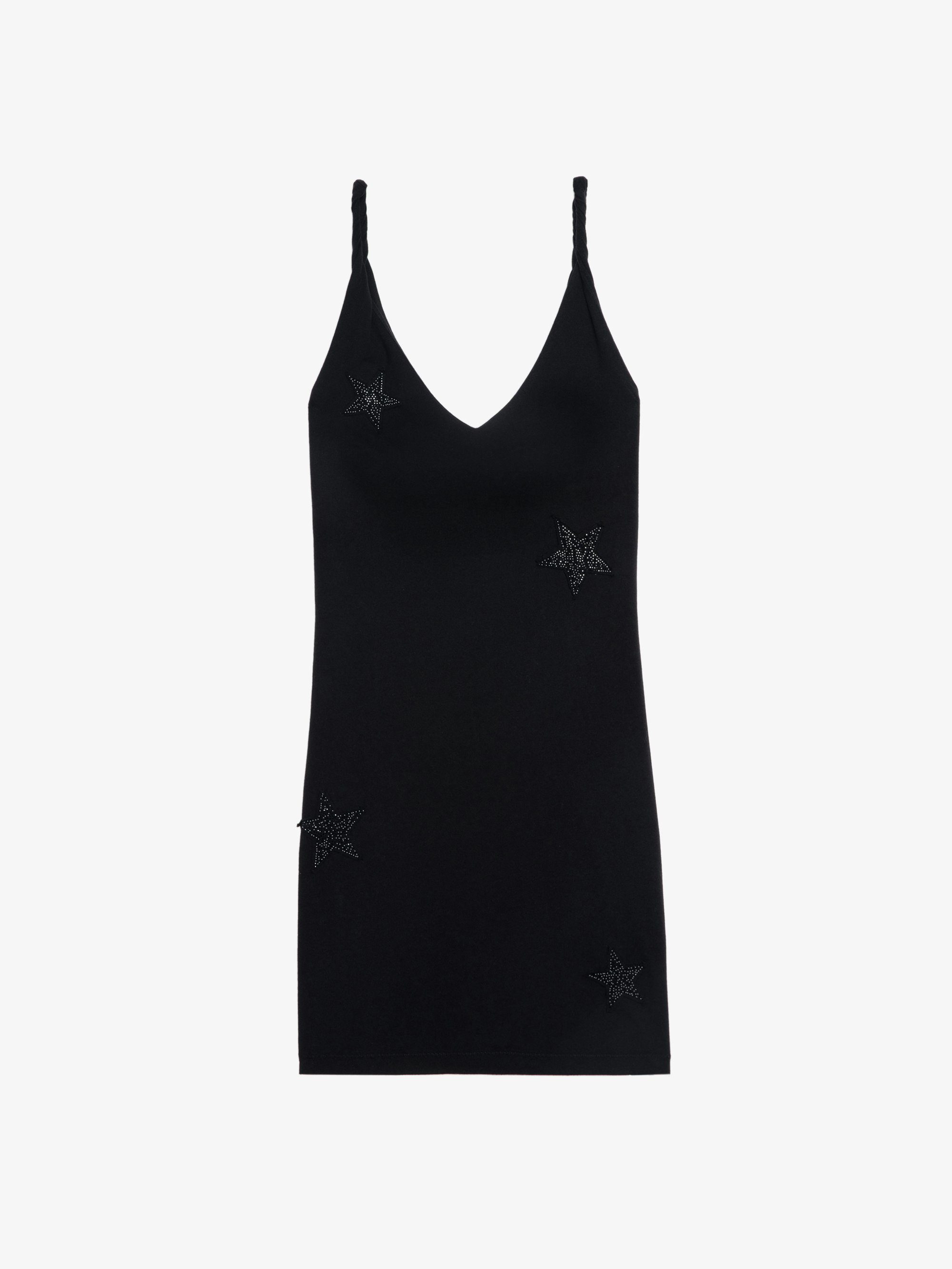 Women's black sleeveless dress with diamante stars. Description & details - Black sleeveless dress - Short length - Diamante stars throughout - V neckline This item fits true to size. Choose your usual size. Composition 100% Cotton* Product code: JWDR01099_BLACK