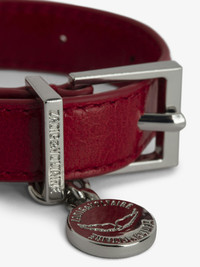 Vintage-effect patent leather bracelet with a medallion charm. Description & details - Women's red patent vintage-effect leather Power bracelet - Holes, metal belt buckle, and Zadig&Voltaire medallion charm 22 cm Composition 100% Cow leather Care - Clean you jewellery with a soft, dry cloth - Avoid contact with water and chemicals (fragrance, cosmetics, chlorine, hydroalcoholic gel) - Protect your jewellery from humidity and any source of heat - Avoid sleeping with your jewellery on - Store your jewellery in its protective pouch Product code: OWJW01750_POWER