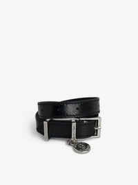 Double-wrap vintage-effect patent leather bracelet with a charm medallion. Description & details - Double-wrap bracelet in black vintage-effect patent leather for women - Holes, metal buckle and Zadig&Voltaire medallion charm 38.5 cm Composition 100% Cow leather Care - Clean you jewellery with a soft, dry cloth - Avoid contact with water and chemicals (fragrance, cosmetics, chlorine, hydroalcoholic gel) - Protect your jewellery from humidity and any source of heat - Avoid sleeping with your jewellery on - Store your jewellery in its protective pouch " Product code: OWJW01753_BLACK