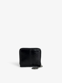 Vintage-effect patent leather purse with medallion and signature wings. Description & details - Women’s purse in black patent leather with vintage effect - Zip fastening with metal medallion pull tab - 3 card slots, one coin compartment with press studs, one double pocket - One flat pocket - Metal wings - Topstitching - Embossed with Zadig&Voltaire Width x height x depth: 10,5 x 9,5 x 2 cm Composition 100% COW LEATHER Care - Protect your leather item from humidity and any source of heat (radiator, sun) - Avoid your item coming into contact with water - Regularly care for your leather item using a colourless nourishing cream for leather, suitable for leather goods - In case of stains, contact a leather professional Product code: LWBA02518_NOIR