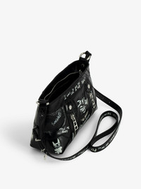 Small vintage-effect patent leather bag with adjustable shoulder strap and signature wings. Description & details - Sunny Mood women's bag in black vintage-effect patent leather - Adjustable leather shoulder strap - Zip closure - Expandable zipped gussets - 6 card slots and 1 interior zipped pocket - Tags print and signature metal wings - Can be worn on the shoulder or cross-body 21 x 12.5 x 8 cm Composition 100% Cow leather Care - Protect your leather item from humidity and any source of heat (radiator, sun) - Avoid your item coming into contact with water - Regularly care for your leather item using a colourless nourishing cream for leather, suitable for leather goods - Ensure you wear your item with similar colours - Avoid overfilling your bag to ensure its durability - In case of stains, contact a leather professional Product code: LWBA03901_NOIR