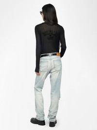 Long-sleeved Henley T-shirt with print on the back. Description & details - Henley T-shirt - "Voltaire Love" print on the back - Plunging V-neck - Long sleeves Model is 180 cm / 5' 10" and is wearing a size S This item fits true to size. Choose your usual size. Composition 70% Viscose** 30% Wool** Care - Machine-wash inside out on a 30°C delicate cycle with similar colours - Air dry - Iron inside out at a maximum of 110°C, avoiding any customised details Product code: JWTN02634_BLACK