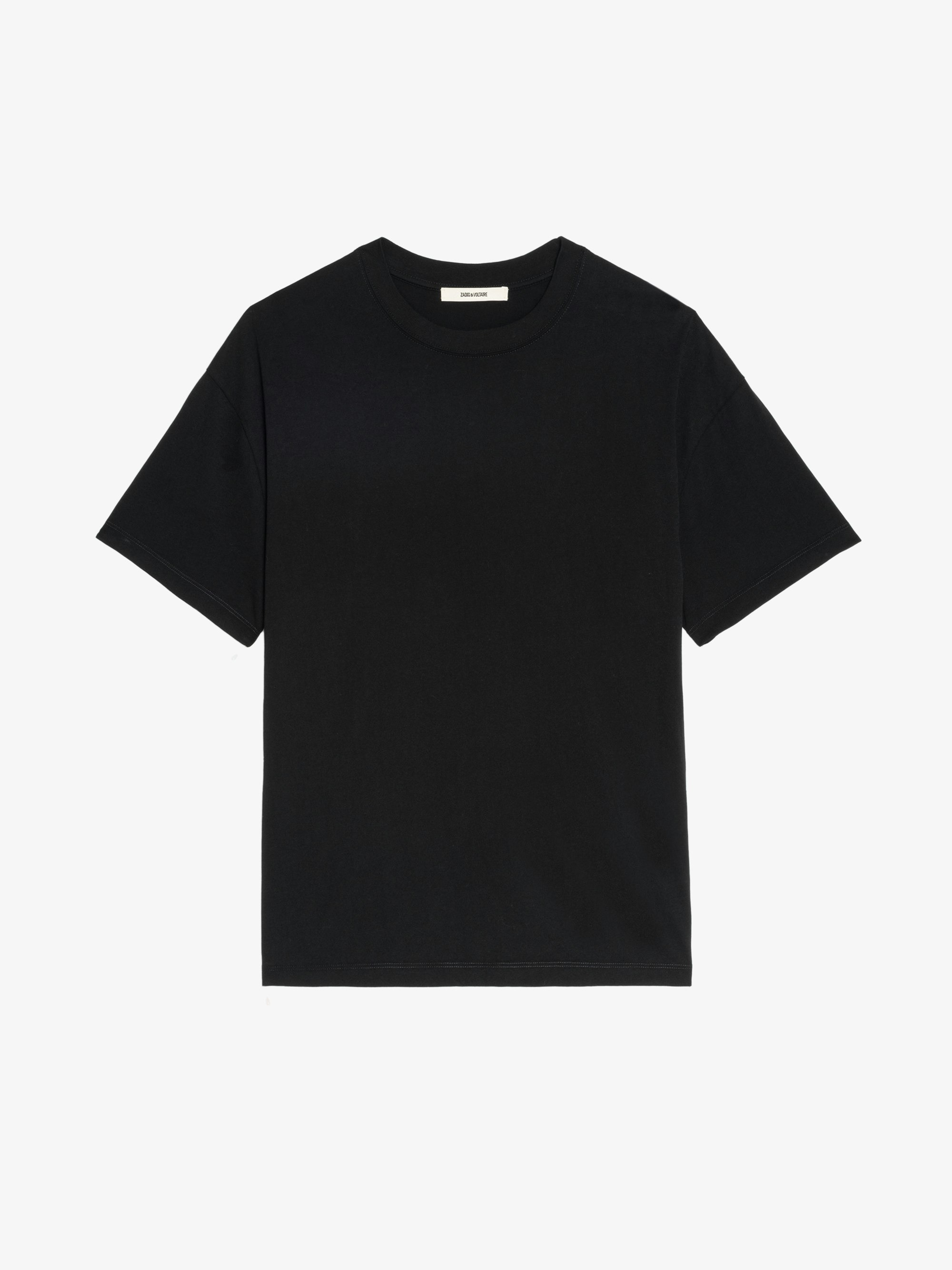 Oversized short-sleeved T-shirt with skull and studs on the back. Description & details - T-shirt in 100% cotton - Skull and studs motif on the back - Round neck - Short sleeves - Regular fit Model is 189 cm / 6' 2" and is wearing a size M This item has a loose fit. For a more fitted look, choose one size down from your usual size. Composition 100% Cotton* Care - Machine-wash inside out on a 30°C delicate cycle with similar colours - Air dry - Iron inside out at a maximum of 110°C, avoiding any customised details Product code: JMTS01731_BLACK