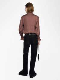 Satin shirt, long sleeves, button fastening and rhinestone wing on the back. Description & details - Satin shirt - Classic collar - Long sleeves - Button fastening - Rhinestone wing on the back Model is 180 cm / 5' 10" and is wearing a size S This item is true to size. We recommend buying your usual size. Composition 57% Polyester** 43% Polyester Care - Hand-wash or machine-wash inside out in a mesh laundry bag on a 20°C delicate cycle with a maximum spin speed of 400 rpm - Air dry flat - Iron inside out at a maximum of 110°C Product code: WWSH02226_BURGUNDY