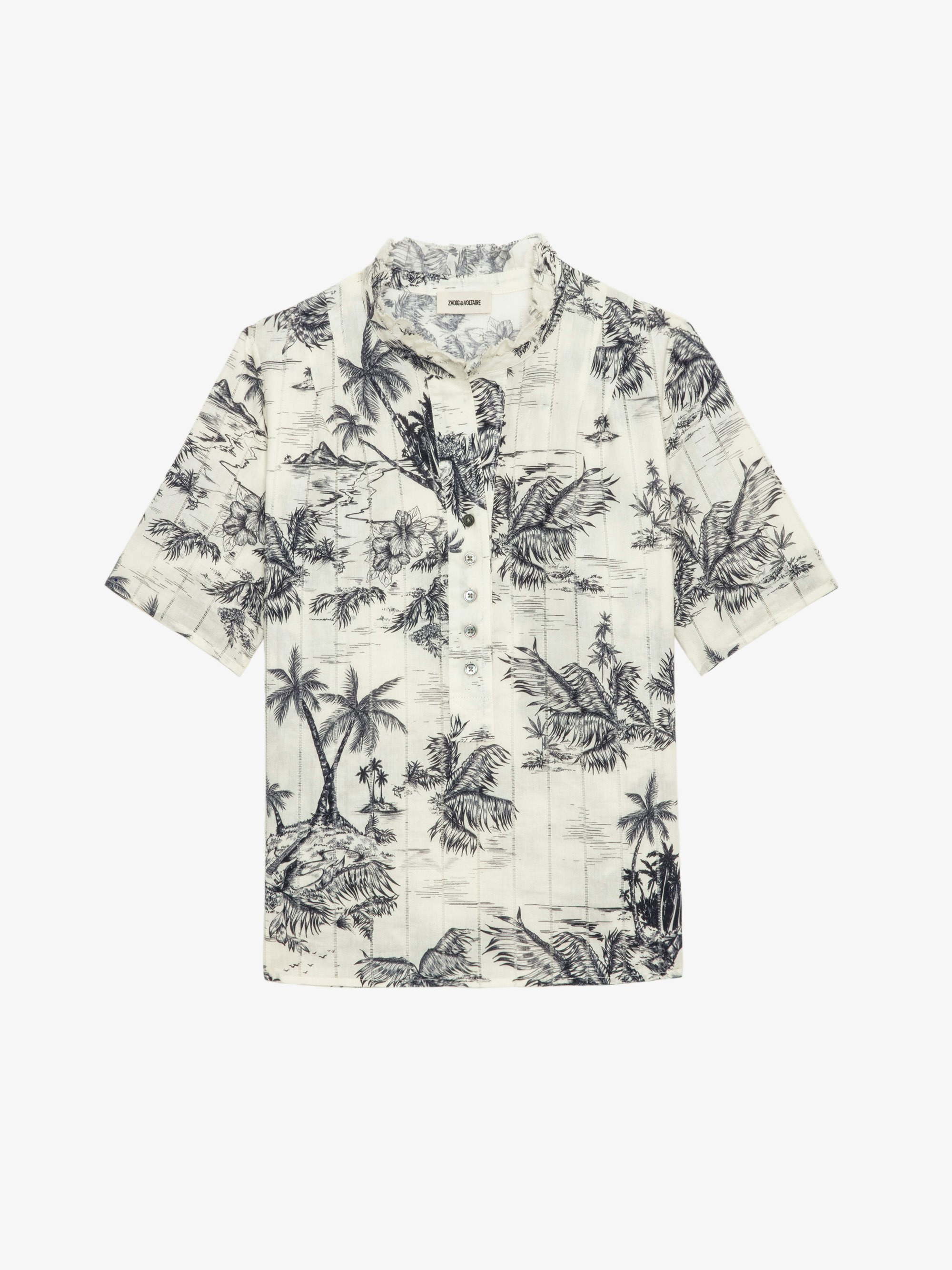 Cotton top with ladder lace insert, short sleeves and button fastening. Description & details - Cotton top - Ladder lace - Buttoned round neck with gathers - Short sleeves Model is 171 cm / 5' 7" and is wearing a size S This item is true to size. We recommend buying your usual size. Composition 100% Cotton* Care - Machine-wash inside out on a 30°C delicate cycle with similar colours - Air dry - Iron inside out at a maximum of 110°C, avoiding any customised details Product code: WWTO01980_ECRU