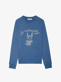 Rock spirit meets playful rebellion. This blue sweatshirt is adorned with sparkling rhinestone artwork and the bold message, Be my Rock & Roll Queen. A relaxed fit with attitude—throw it on, own the night, and shine on. Description & details - Cotton fleece sweatshirt - "Be My Rock & Roll Queen" rhinestone embellishment on front - Crew neck - Long sleeves and ribbed edges - Customizations created by Humberto Cruz, illustrator artist from San Diego. Influenced by pop culture, fashion and colours, he describes his work as spontaneous and offbeat Model is 171 cm / 5' 7" and is wearing a size S This item is true to size. We recommend buying your usual size. Composition 100% Cotton* Care - Machine-wash inside out on a 30°C delicate cycle with similar colours - Air dry - Iron inside out at a maximum of 110°C, avoiding any customised details Product code: JWSS01650_SURF