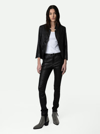 Women’s black leather jacket. Description & details The iconic Verys jacket takes on the Maison’s signature material: crinkled leather. - Zadig&Voltaire Women’s black crinkled leather jacket - Long sleeves - Stand-up collar - Straight cut - Chest pocket - 2 flap pockets Model is 180 cm/5'11" and is wearing a size 36 Model is 180 cm / 5' 10" and is wearing a size S This item is true to size. We recommend buying your usual size. Composition 100% LAMBSKIN Care This garment should be cared for by a leather professional. Product code: SHCU1403F_NOIR