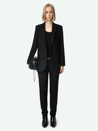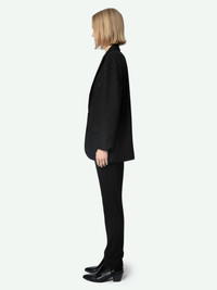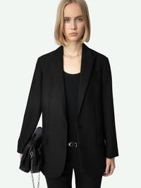 Black blazer with rhinestones. Description & details - Women’s black suit jacket - Button closure - Diamante stars - 2 flap pockets - Long sleeves - Rear slit Model is 176 cm / 5' 9" and is wearing a size 36 This item is true to size. We recommend buying your usual size. Composition 43% Polyester** 26% Polyester 23% Viscose 8% Elasthanne Care This garment should be dry-cleaned only. Product code: WWBL01922_BLACK