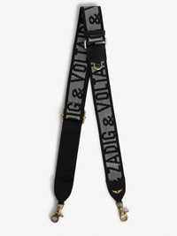 Adjustable shoulder strap with nylon effect finish and leather wings signatures. Description & details - Adjustable shoulder strap with leather inserts - Contrasting glitter woven jacquard - Snap hooks - Wings signature 0.16 x 4 cm Composition 100% Nylon Care - Do not machine-wash your item - In case of stains, contact a leather professional Product code: LWOG00005_NOIR SILVER