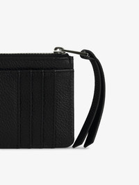 ZV black grained leather card holder. Description & details - Women’s ZV black grained leather card holder - 4 card slots - One flat pocket - One zip pocket - Studded piping - Diamante-embellished wings 8 cm Composition 100% Cow leather Care Do not expose your item to a source of heat or to sunlight for a prolonged period. In the event of accidental exposure to water, leave your item to dry at room temperature, away from direct light. Avoid routinely overloading your handbag or clutch. To prolong its life, store your item in a dust bag and pad it with tissue paper to maintain its shape. To maintain the shine of your smooth or grained leather item, use a leather cream or polish. Product code: LWSG00011_BLACK SILVER