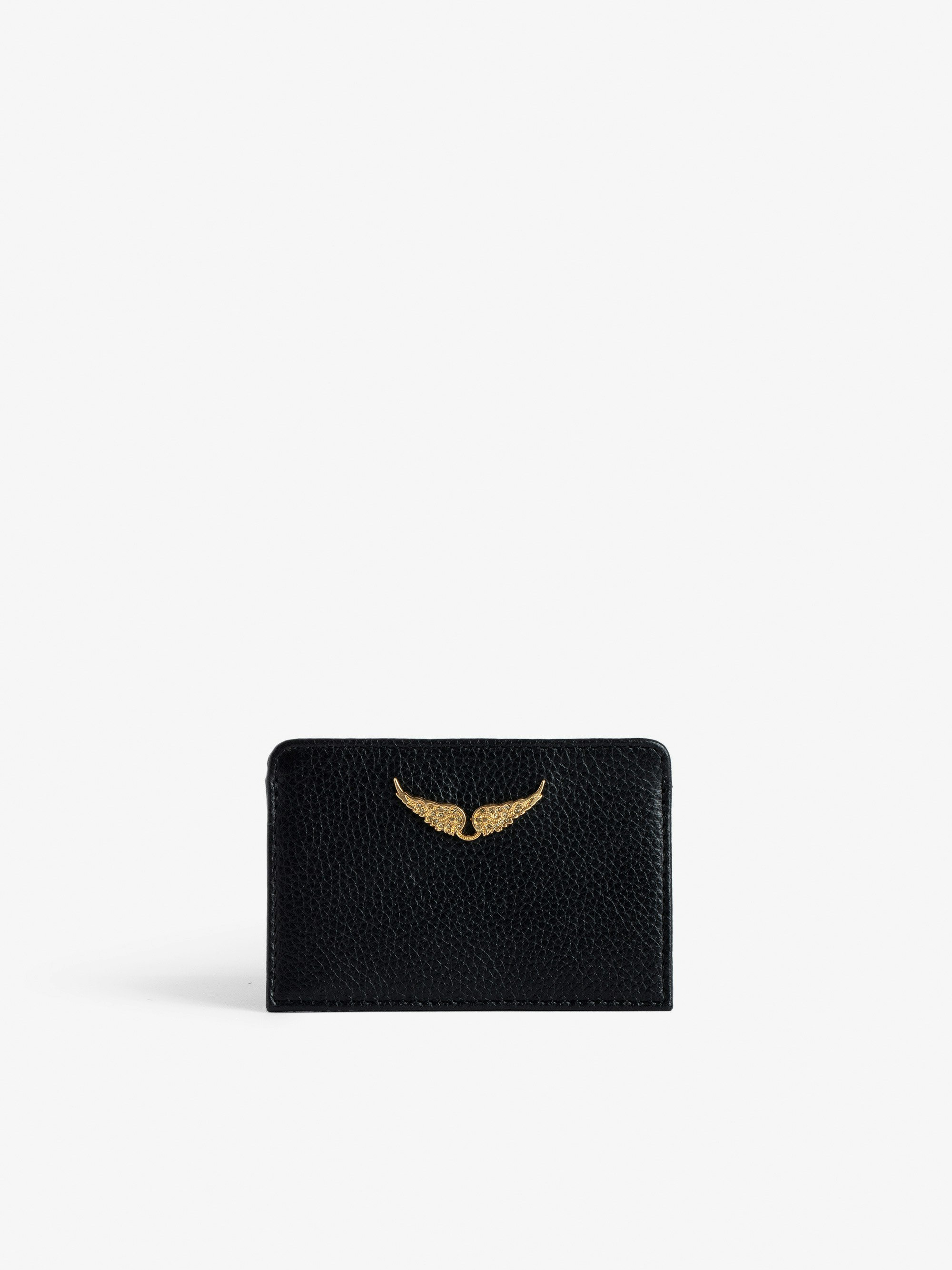Women’s black and gold grained leather card holder with diamanté wings charm. Description & details - Women’s ZV Pass card holder in black and gold grained leather - Gold-tone metal diamanté wings - 2 slots - Embossed Zadig&Voltaire branding Height x Width x Length: 2.8 x 4.1 x 0.4 in. Composition 100% CALF LEATHER Care Do not expose your item to a source of heat or to sunlight for a prolonged period. In the event of accidental exposure to water, leave your item to dry at room temperature, away from direct light. Avoid routinely overloading your handbag or clutch. To prolong its life, store your item in a dust bag and pad it with tissue paper to maintain its shape. To maintain the shine of your smooth or grained leather item, use a leather cream or polish. Product code: LWSG00001_NOIR GOLD