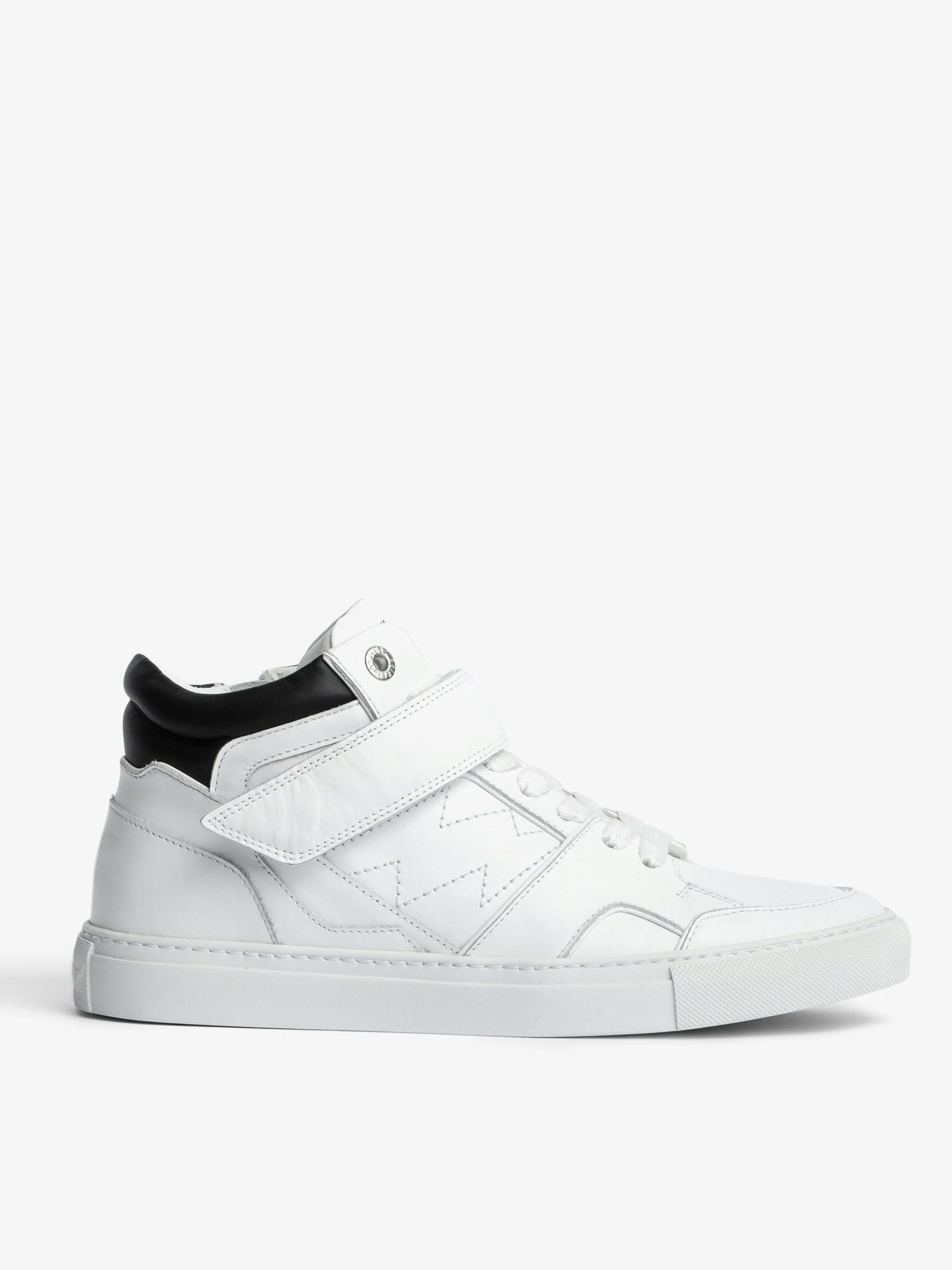 Women’s white leather mid-top sneakers Description & details Zadig&Voltaire’s iconic ZV1747 sneakers are available this season in a smooth white leather version featuring lightning bolt topstitching and a Velcro fastening with a wings charm. - Zadig&Voltaire women's ZV1747 mid-top sneakers in white smooth leather - Lightning bolt topstitching - Velcro fastening with metal wings - Contrasting reinforcement - White laces - ZV printed tongue - Made in Portugal Platform insole: 2.7 cm. This item is true to size. We recommend buying your usual size. Composition 100% CALFSKIN Care Do not expose your item to a source of heat or to sunlight for a prolonged period. In the event of accidental exposure to water, leave your item to dry at room temperature, away from direct light. Brush your shoes after every wear and let them rest as much as possible between each wear, with shoetrees inside them to let them breathe and to maintain their shape. To maintain the shine of your smooth or grained leather item, use a leather cream or polish. Product code: SWSN00072_BLANC