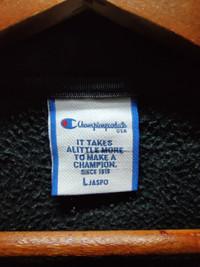 Size : L ( please refer to actual measurement given and compared with your best fitting clothes) Measurement: (garment laid flat) Width (Armpit to armpit):24" inches Length (Top Back Collar to bottom):27" inches Tag :Champion Material: Polyester/Cotton Condition : 9/10 used Colour: Black PAYMENTS SHIPPING: Accept PAYPAL Only Please leave your phone number on the note while make a purchase. This item will be ship along with Tracking Number after received a completed payment. $30 ( Register post with tracking number 5-14 day varies place β’ Some items are in used condition and will show signs of wear, please see the condition of the item as detailed in the description and note any defects shown in pictures of the items. β’ No returns, refunds, cancellations or exchanges are accepted. All sales are final. ATTENTION : Please pay close attention to measurements provided. Do not rely on tag size as pre-worn items may have been altered, stretched or shrunk & vintage sizes do not directly translate the modern sizes.The best way to ensure a right fit is to compare our measurements with the measurements of a similar item that you know fits you well.Please enlarge the photos for clearer image. Most Of My Items Are Vintage/Used Items, So Please Check Pictures And Ask Questions. Thank You. You also can buy bulk but please offer me reasonable price. Please do not hesitate to contact me if you have any inquiries. Don't forget to check out my store today for more. Please binding offer. π I Will Accept a Best Price. π Thank you SKU1