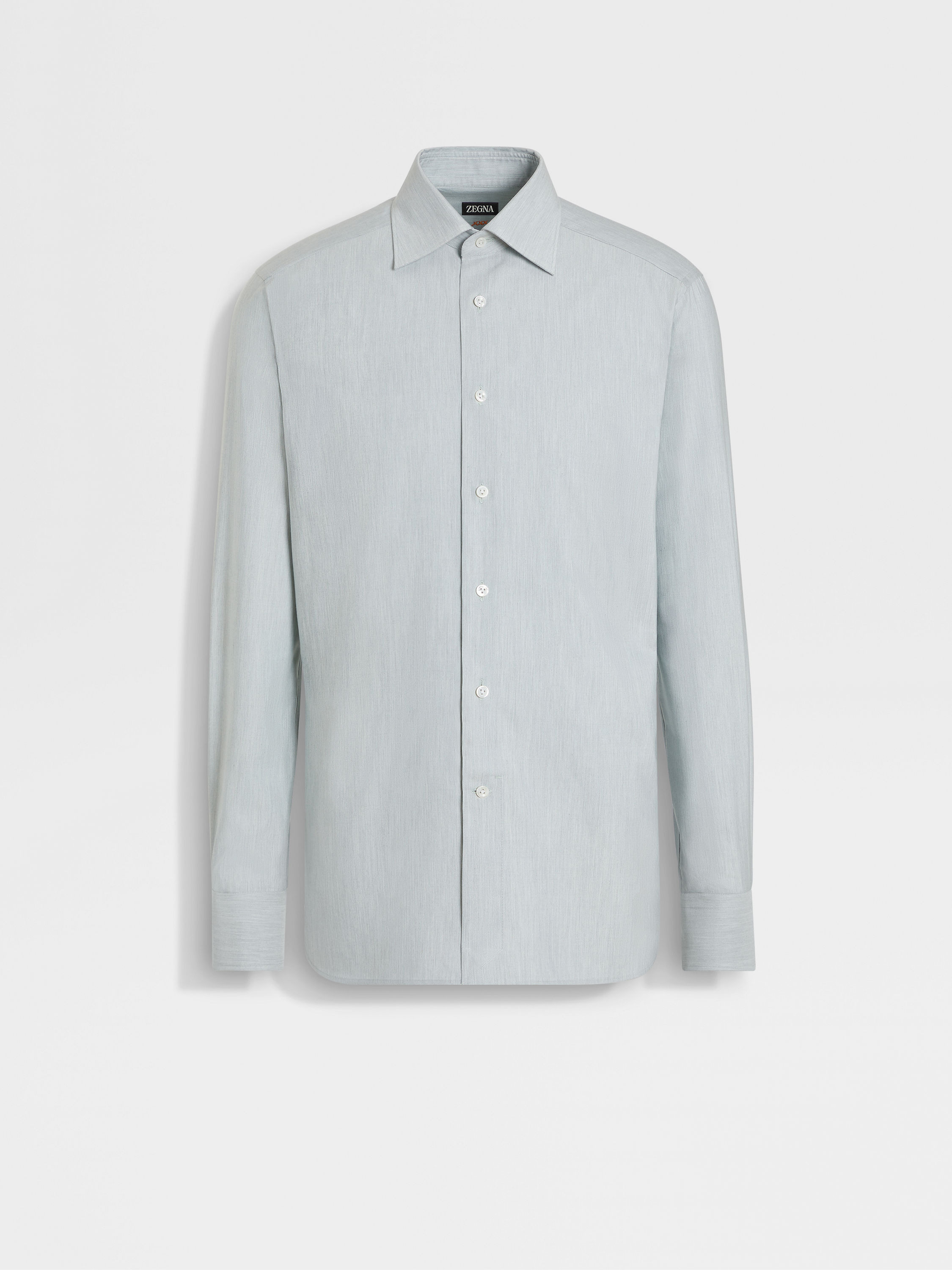 This aqua green long-sleeve shirt is crafted from a luxurious blend of silk, cotton and cashmere. INFO A sublime silk-cotton-cashmere blend elevates a familiar silhouette to luxury status with this long-sleeve shirt. Presented in a refined aqua green shade, this versatile yet sophisticated garment features a semi-spread collar and rounded hem. PRODUCT CODE 202215A2-9NS0AT MATERIALS AND CARE 47% Mulberry Silk; 45% Cotton; 8% Cashmere Wash by hand. Do not bleach. Do not tumble dry. Flat drying. Iron at max 110°C. Professional dry cleaning in tetrachloroethene and hydrocarbons. FIT AND PRODUCT DETAILS • Regular fit • Tailoring shirt • Semi-spread collar • Standard cuffs • Button closure • Rounded hem • Lightweight fusing • 79 cm length on size 39