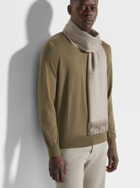 The beige Oasi Cashmere scarf is a luxurious choice of accessory. INFO Zegna's uncompromising quality standards extend to the simplest accessories: the beige Oasi Cashmere scarf is knit from one of the brand's softest and most exclusive materials. This lush cashmere scarf is presented in a solid colorway and accentuated with the tonal leather Zegna 232 Road Brand Mark. PRODUCT CODE Z8L41SA8-26N-BE1 MATERIALS AND CARE 100% Cashmere The inspiration behind this Oasi Cashmere Collection garment was Born in Oasi Zegna, our 100km² natural territory and the home of our values. It's crafted from Oasi Cashmere fibres, which ZEGNA commits to certifying as traceable from 2024. The Oasi Cashmere Collection follows in the footsteps of our founder, who envisioned a vertically integrated system of producing textiles. Do not wash. Do not bleach. Do not tumble dry. Do not iron. Professional dry cleaning in tetrachloroethene and hydrocarbons, mild process. FIT AND PRODUCT DETAILS • Size: 180 x 36 cm / 70.9 x 14.2 in • Tonal leather Zegna 232 Road Brand Mark • Oasi Cashmere label • Made in Italy