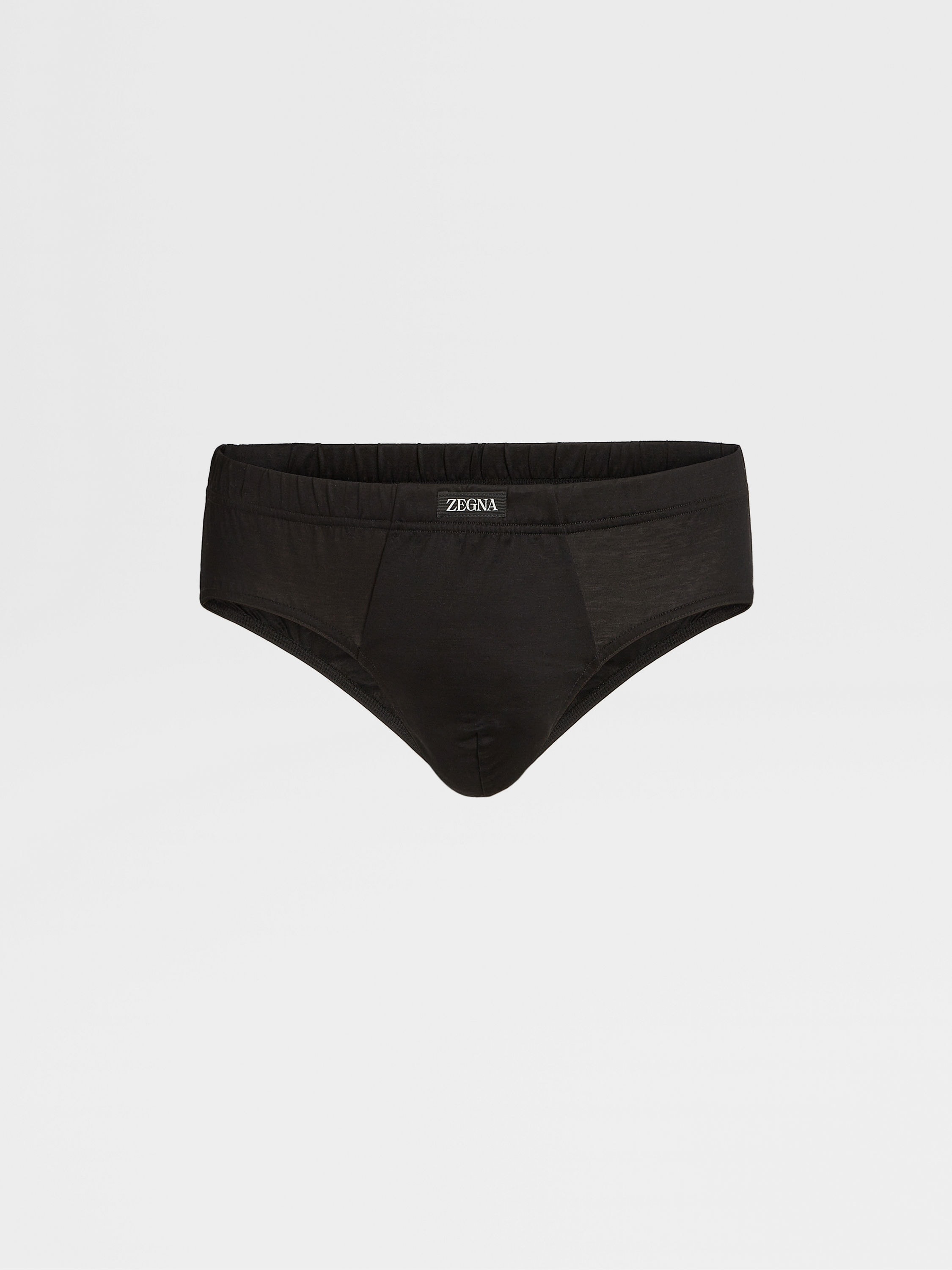 The black pure cotton midi briefs are made from high-quality Filoscozia cotton. INFO Thanks to their premium natural material, the black pure cotton midi briefs are all about luxurious everyday comfort. The Zegna Logo tag on the waistband signs off the essential design. PRODUCT CODE N2L61-011-001 MATERIALS AND CARE 100% Cotton Max washing temp 30°C, mild process. Do not bleach. Iron at max 110°C. Do not dry clean. Do not tumble dry. FIT AND PRODUCT DETAILS • Zegna Logo tag on the waistband • Fits true to size