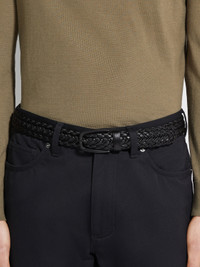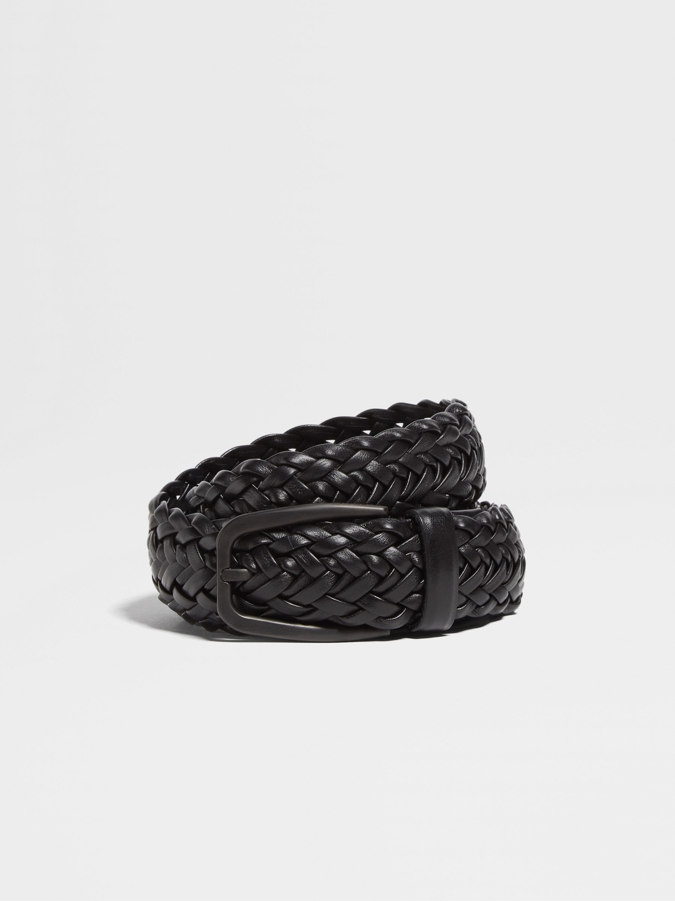 The black leather belt revisits a classic accessory with contemporary finishes. INFO A sophisticated, braided construction highlights the black leather belt's supple material. The fine lamb leather is set off with a metal belt buckle featuring a black, brushed PVD finish for an ultra modern twist. PRODUCT CODE LHIMP-B021ZZ-NER MATERIALS AND CARE Lamb Leather Protect from moisture and do not place near direct sources of heat. Clean with a soft cloth. Do not use solvents or polishes. Avoid contact with cosmetics, perfumes and hand lotions and sanitizers. Store in a cool, dry, well-ventilated place. Stow in the included dust bag when not in use. FIT AND PRODUCT DETAILS • Braided lamb leather • Metal buckle with black brushed PVD finish • Fixed belt • Made in Italy • Width: 3.2 cm / 1.2 in