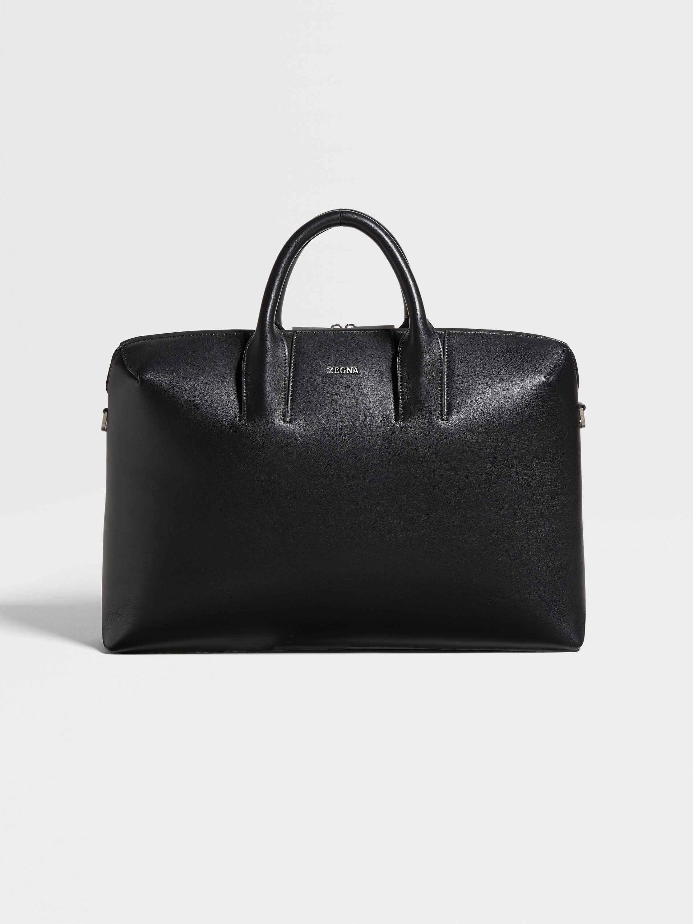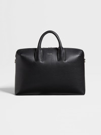 The black leather business bag keeps your documents and electronics secure. INFO The black leather business bag is made from pure calf leather and set off with glazed silver finishes. This larger version of the leather business bag is ideal for travel or for busy days around town. It zips shut and is lined with durable, dark grey polyester. PRODUCT CODE LHGRN-C2226Z-NER MATERIALS AND CARE Main body: Calf Leather Lining: Polyester Protect from moisture and do not place near direct sources of heat. Clean with a soft cloth. Do not use solvents or polishes. Avoid contact with cosmetics, perfumes and hand lotions and sanitizers. Store in a cool, dry, well-ventilated place. Stow in the included dust bag when not in use. FIT AND PRODUCT DETAILS • Zip closure • Zegna Logo • Glazed silver finish • Dark grey polyester lining • 45 x 33.5 x 16 cm / 17.7 x 13.1 x 6.2 in • Made in Italy