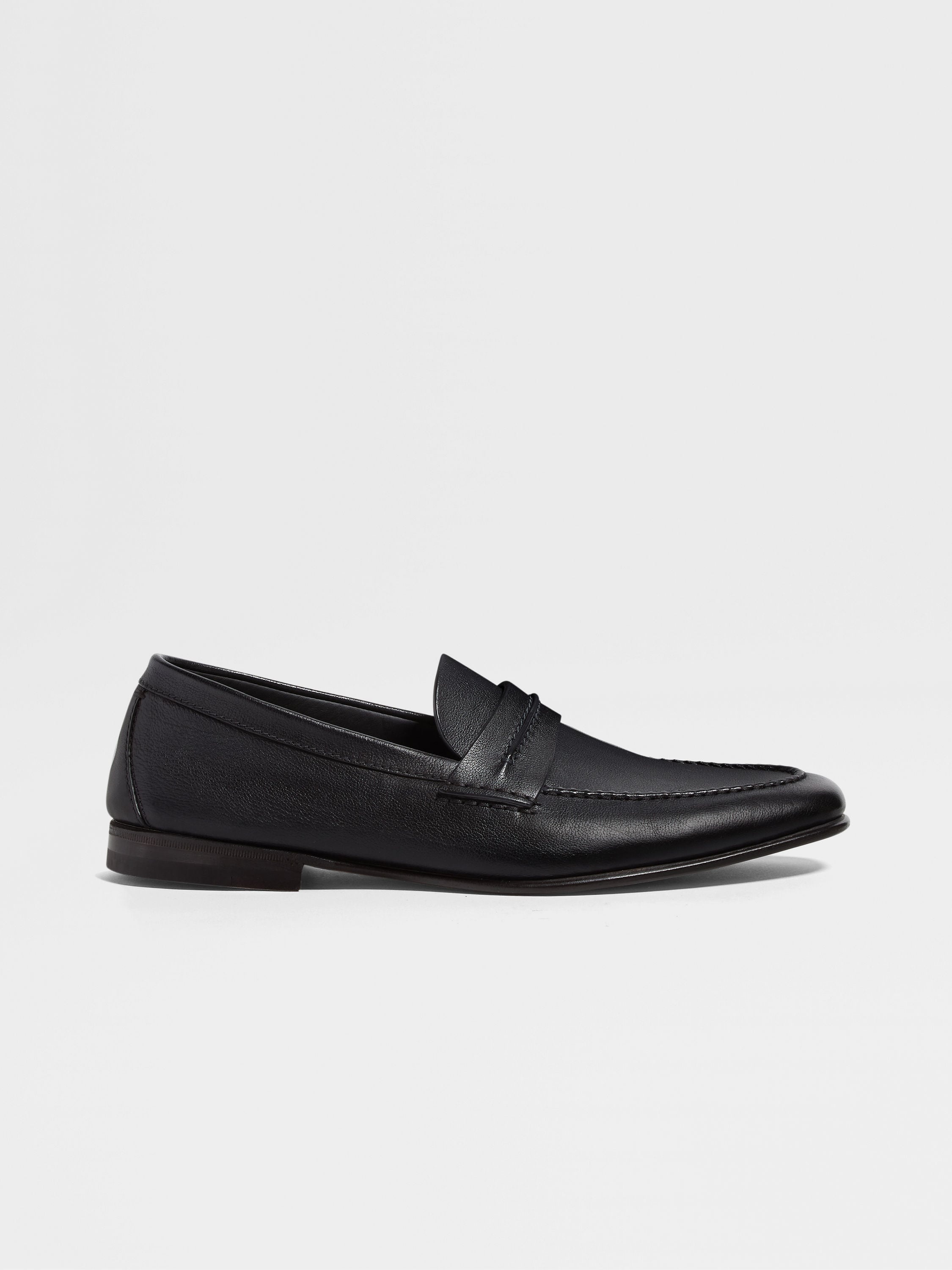 This black Mocassin loafer is a true expression of refined style and expert craftsmanship. INFO Extremely soft Natural Grain Leather in an elegant black hue traces the timeless lines of this Mocassin loafer. Crafted from the finest materials and designed for exceptional flexibility, every pair is meticulously hand-finished by experienced Artisans in order to obtain a luminous and refined shadowing. This Mocassin loafer is finished with a hand-stitched band featuring the signature ZEGNA 232 Road Brand Mark and a leather sole with rubber injection. Born in the streets of Italy, ZEGNA Mocassin embodies Italian craftsmanship and heritage. Its name comes from the way our Founder used to call this kind of shoe in the Piedmontese dialect—"mocassin"—reflecting a deep-rooted tradition. Designed for effortless elegance, it features the 232 Road Brand Mark—a tribute to ZEGNA’s journey. An Italian icon, it pioneers a new Mocassin family, redefining modern sophistication. PRODUCT CODE LHBFS-A8037Z-DGM MATERIALS AND CARE Italian Mediterranean Buffalo Leather Clean with a soft cloth. Maintain the leather's luminous appearance by applying a small dab of polish and distributing it uniformly over the surface with a soft cloth. Let it dry for a few minutes, then vigorously shine with clean, soft cloth. Avoid contact with abrasives, including hard-bristled brushes, and substances containing alcohol, such as perfumes, solvents, etc. In case of contact with water, it is important to let the footwear dry completely before cleaning. Store in the included dust bag in a cool, dry place. FIT AND PRODUCT DETAILS • Natural Grain Leather • Hand stitched by experienced Artisans • Hand finished upper • Hand stitched band with ZEGNA 232 Road Brand Mark • Hand painted edges, details and sole • Hand buffing color finishing • Reverse construction • Leather insole • Leather sole with rubber injection • Made in Italy • Fits true to size • Comes with a shoe bag
