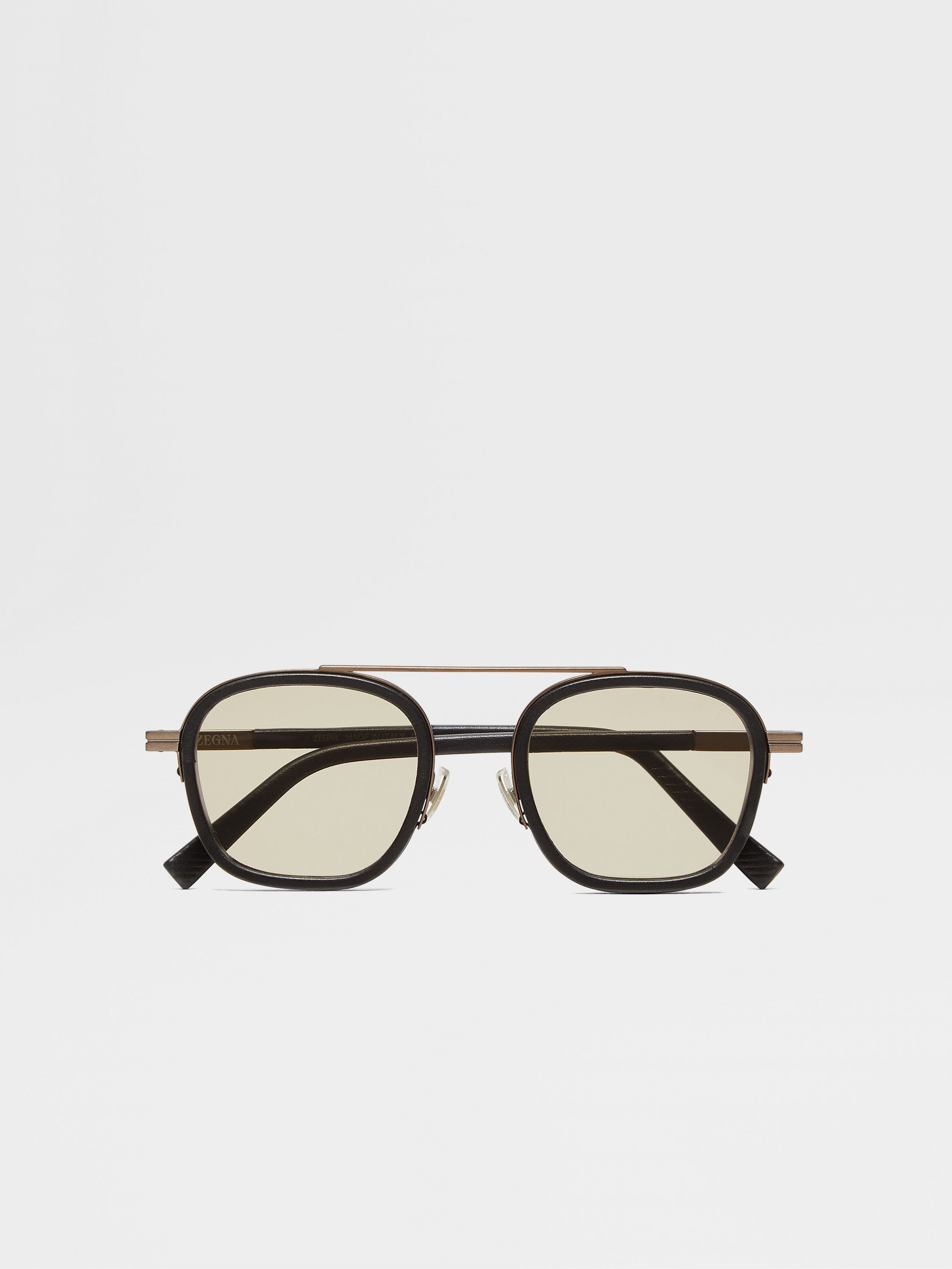 BLACK ORIZZONTE I METAL ACETATE AND LEATHER SUNGLASSES