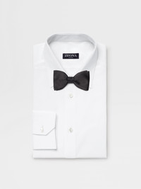 The black silk bowtie is an essential accessory for formal evening wear. INFO For special occasions, choose the black silk bowtie. The pure, natural material lends its unmistakable finish to this timeless accessory. PRODUCT CODE E8D60T-4PL-BK1 MATERIALS AND CARE 100% Mulberry Silk Do not wash. Do not bleach. Do not dry clean. Do not tumble dry. Do not iron. FIT AND PRODUCT DETAILS • Zegna Logo • Made in Italy