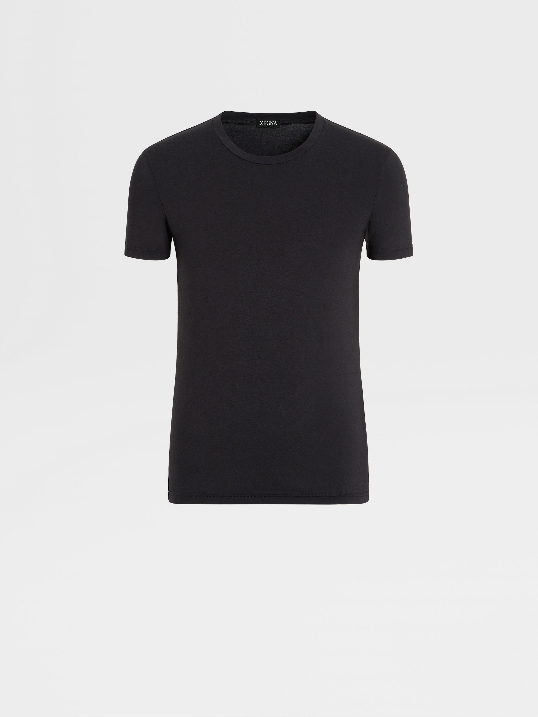 On its own or under shirts, the black stretch cotton crewneck T-shirt is a staple. INFO The black stretch cotton crewneck T-shirt feels soft against the skin. Perfect for everyday thanks to its breathable material and added stretch, the T-shirt is topped off with a classic, round collar. PRODUCT CODE N2M20-009-001 MATERIALS AND CARE 88% Cotton; 12% Elastane Max washing temp 30°C, mild process. Do not bleach. Iron at max 110°C. Do not dry clean. Do not tumble dry. FIT AND PRODUCT DETAILS • Short sleeves • Round collar • Fits true to size