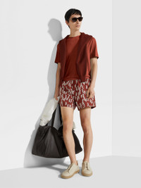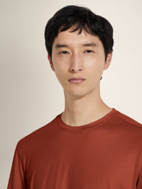 Introducing the brick red Vellus Aureum T-shirt. Exceptional softness meets understated style for everyday wear. INFO The brick red Vellus Aureum T-shirt reimagines a wardrobe staple through the lens of unique quality. Crafted from exceptionally fine wool, it offers softness and refinement. The regular fit, crewneck collar and short sleeves maintain a classic silhouette, while the tubular hem and cuffs ensure a clean finish. PRODUCT CODE UFV97A9-FV7VL8-D09 MATERIALS AND CARE 100% Wool Vellus Aureum was inspired by our founder's quest for excellence to seek the finest wool in the world. Exquisitely fine in texture and rare, we're committed to certifying Vellus Aureum fibres as 100% traceable by the end of 2025. Do not wash. Do not bleach. Do not tumble dry. Iron at max 110°C. Professional dry cleaning in hydrocarbons. FIT AND PRODUCT DETAILS • Short sleeves • Crewneck collar • Tubular hem and cuffs • Regular fit