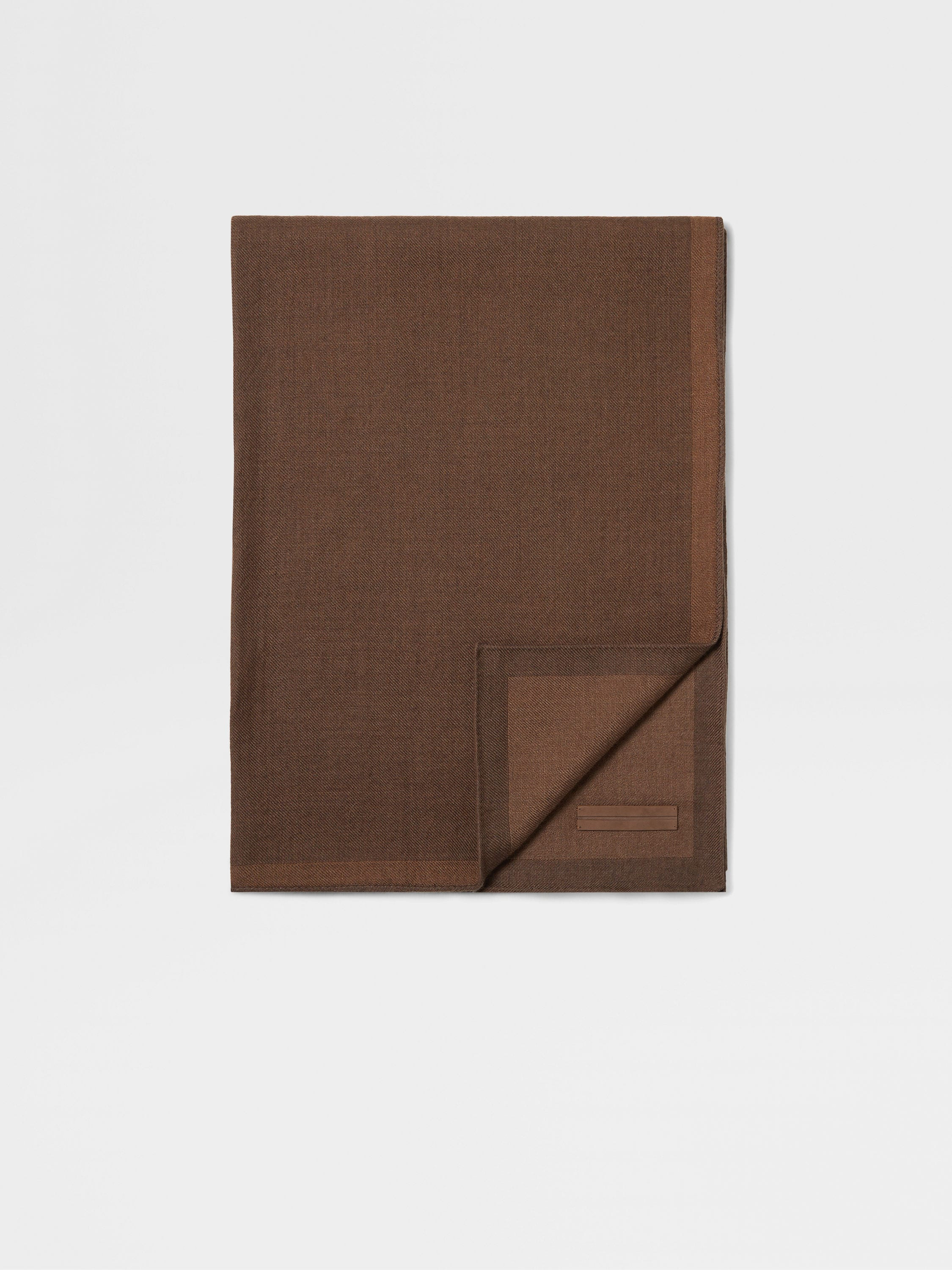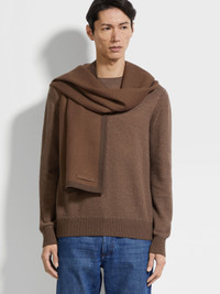 The best of cashmere and silk elevate this brown scarf to luxury status. INFO A cold-weather essential, reimagined in a luxuriously soft blend of cashmere and silk. Presented in a versatile brown shade, this scarf is enriched with leather details. Detailed with our signature 232 Road Brand Mark on the matching pouch. PRODUCT CODE Z2L21SA2-22D-BR2 MATERIALS AND CARE Main body: 85% Cashmere; 15% Mulberry Silk Leather details: Calfskin Do not wash. Do not bleach. Do not tumble dry. Do not iron. Professional dry cleaning in tetrachloroethene and hydrocarbons, mild process. FIT AND PRODUCT DETAILS • Size: 190 x 70 cm / 74.8 x 27.5 in • Leather details • ZEGNA 232 Road Brand Mark on the pouch