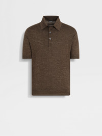BROWN MÉLANGE SILK CASHMERE AND LINEN POLO SHIRT