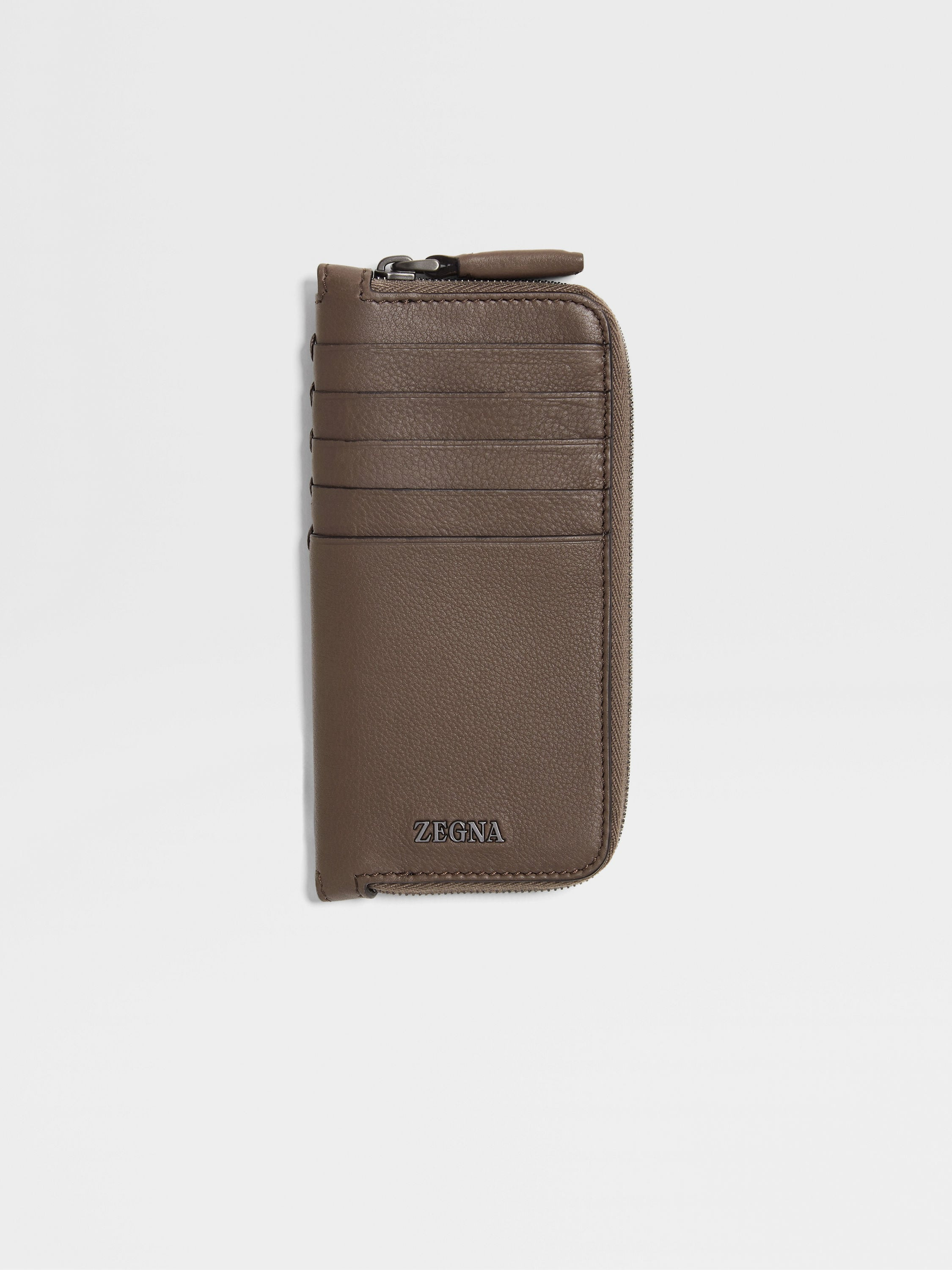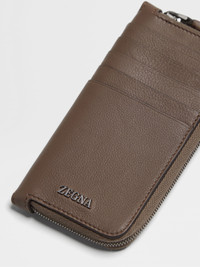 Embrace the sleek elegance of brown leather with this SECONDSKIN wallet. INFO The refined allure of genuine leather takes center stage with this brown SECONDSKIN wallet, elevated with polished ultrablack hardware and a sleek ZEGNA Logo. Styled with a secure zip closure and a durable polyester lining. PRODUCT CODE LHOTO-E1958Z-SRA MATERIALS AND CARE Main body: Calf Leather Lining: 100% Polyester SECONDSKIN is crafted by tanneries selected for their renowned expertise. Fine, supple and incredibly soft to the touch, it moulds to your proportions over time — offering impeccable comfort with each wear. Protect the product from humidity and keep it away from direct heat sources. Clean the product with a soft cloth. Do not use solvents or polish. Avoid contact with hand creams, hand sanitisers, cosmetics and perfumes. Do not store the product in areas with high temperatures, high humidity or poor ventilation. When not in use, store the product in the fabric bag provided at the time of purchase. FIT AND PRODUCT DETAILS • Zip closure • 10 card slots • Polished ultrablack finish • Dark grey polyester lining • ZEGNA Logo • 11 x 7.6 cm / 4.3 x 3 in • Made in Italy