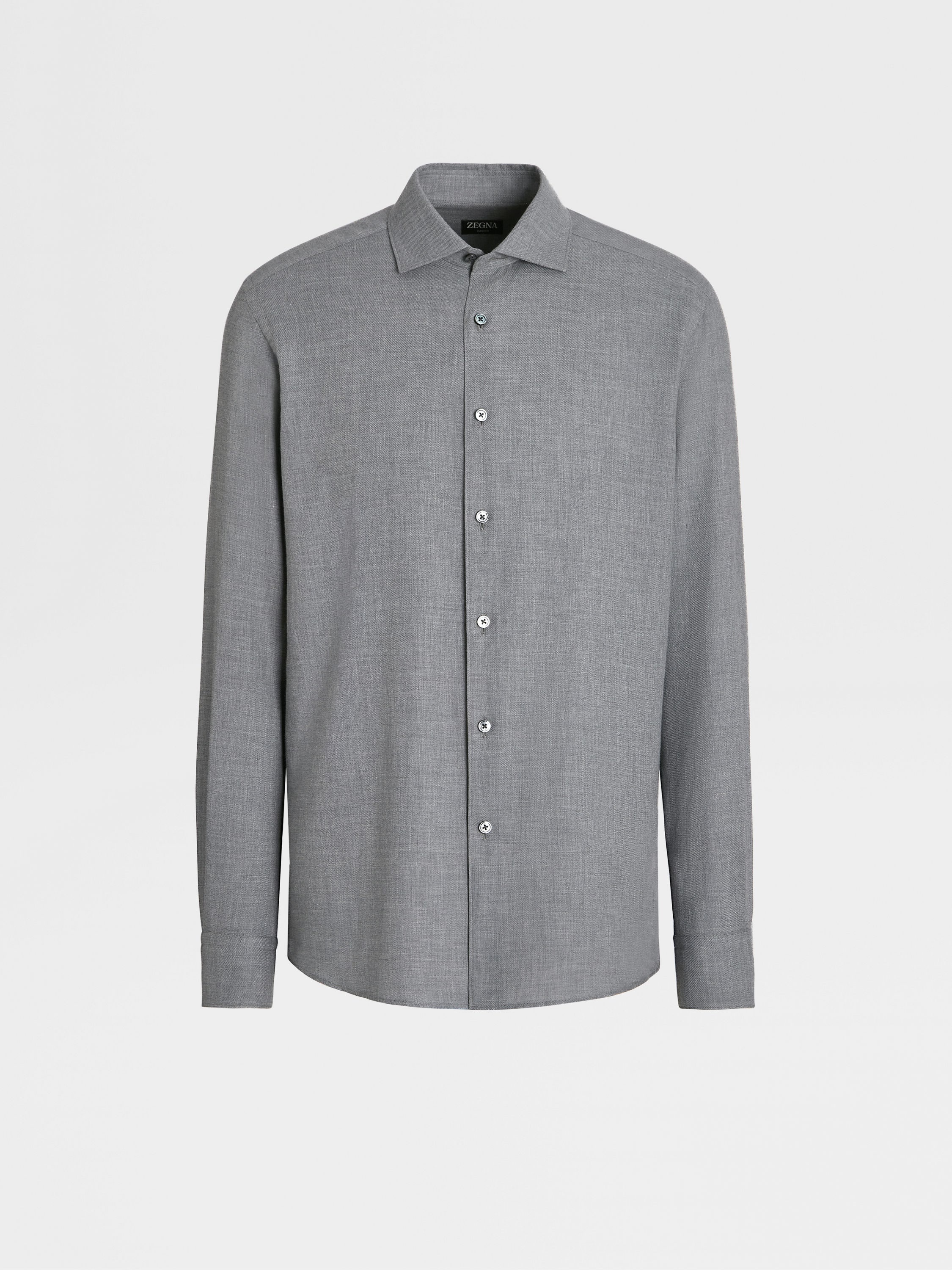 A refined blend of cotton and cashmere makes the grey mélange Cashco long-sleeve shirt soft and smooth to the touch. INFO The grey mélange Cashco long-sleeve shirt is made from one of Zegna's lightest yarns. Perfect for everyday wear, this elegant, long-sleeve shirt is styled with a semi-spread collar and detachable stays. PRODUCT CODE E8X44A6-SRF5-046 MATERIALS AND CARE 85% Cotton; 15% Cashmere This garment is crafted from a luxurious blend of cashmere and cotton for exceptional softness and breathability. Wash by hand. Do not bleach. Do not tumble dry. Iron at max 110°C. Professional dry cleaning in tetrachloroethene and hydrocarbons. FIT AND PRODUCT DETAILS • Regular fit • Semi-spread collar • Standard cuffs • Button closure • Rounded hem • Detachable stays • 79 cm length on size 48