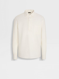 This long-sleeve white melange Cashco shirt brings together the very best of cotton and cashmere. INFO ZEGNA's signature blend of cotton and cashmere elevates a timeless silhouette to luxury status. Styled with a rounded hem and long sleeves, this Cashco shirt is presented in a white melange hue for endless versatility. Finished with a pocket on the chest. PRODUCT CODE UGX34A2-SRF13-N01 MATERIALS AND CARE 93% Cotton; 7% Cashmere This garment is crafted from a luxurious blend of cashmere and cotton for exceptional softness and breathability. Wash by hand. Do not bleach. Do not tumble dry. Flat drying. Iron at max 110°C. Professional dry cleaning in tetrachloroethene and hydrocarbons. FIT AND PRODUCT DETAILS • Regular fit • One-piece shirt collar • Shirt cuffs • Button closure • Rounded hem • Chest patch pocket • Side vents • 77 cm length on size 39