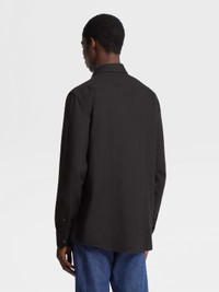 A refined blend of cotton and cashmere makes the black Cashco long-sleeve shirt soft and smooth to the touch. INFO The black Cashco shirt is made from one of Zegna's lightest yarns. Perfect for everyday wear, this elegant, long-sleeve shirt is styled with a semi-spread collar and detachable stays. PRODUCT CODE E8X44A6-SRF5-490 MATERIALS AND CARE 85% Cotton; 15% Cashmere This garment is crafted from a luxurious blend of cashmere and cotton for exceptional softness and breathability. Wash by hand. Do not bleach. Do not tumble dry. Iron at max 110°C. Professional dry cleaning in tetrachloroethene and hydrocarbons. FIT AND PRODUCT DETAILS • Regular fit • Semi-spread collar • Standard cuffs • Button closure • Rounded hem • Detachable stays • 79 cm length on size 48