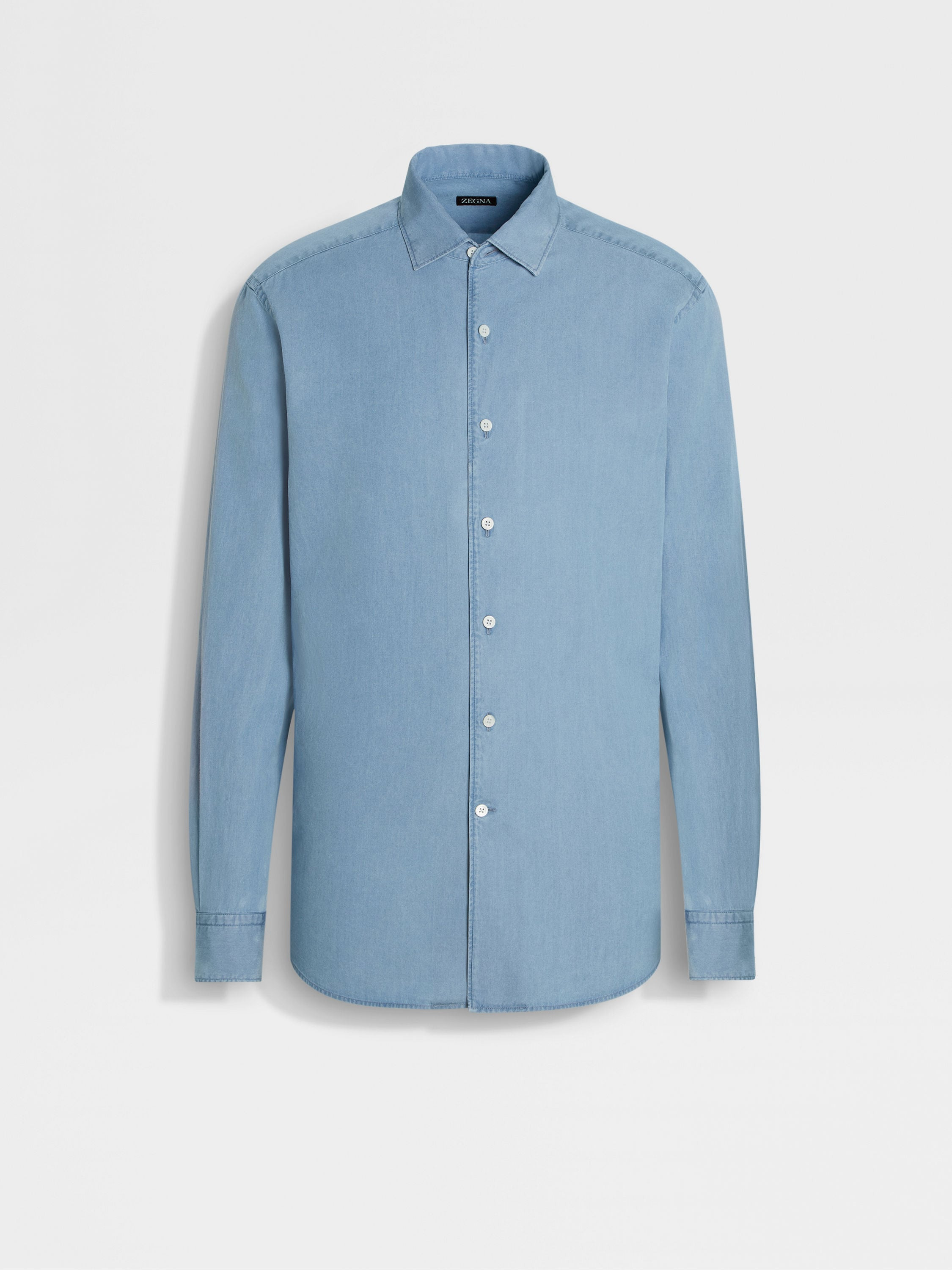Pure cotton in elegant light blue: this long-sleeve shirt is a smart essential. INFO A tale of simple elegance: this long-sleeve shirt is crafted from crisp cotton in a charming light blue colorway, enriched with a bleached finish for authentic charm. Styled with standard cuffs and side gussets. PRODUCT CODE UGX25A2-SRO1-004 MATERIALS AND CARE 100% Cotton Max washing temp 30°C. Do not bleach. Do not tumble dry. Line drying in the shade. Iron at max 110°C. Professional dry cleaning in tetrachloroethene and hydrocarbons. FIT AND PRODUCT DETAILS • Regular fit • One-piece collar • Standard cuffs • Button closure • Bleached • Side gussets • 79 cm length on size 39