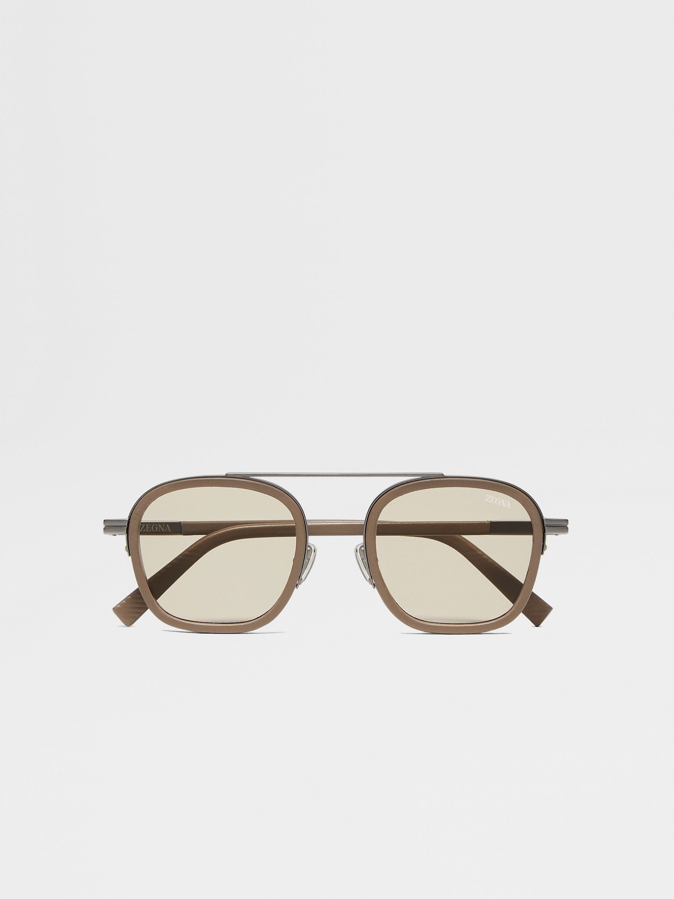 DARK BEIGE ORIZZONTE I METAL ACETATE AND LEATHER SUNGLASSES