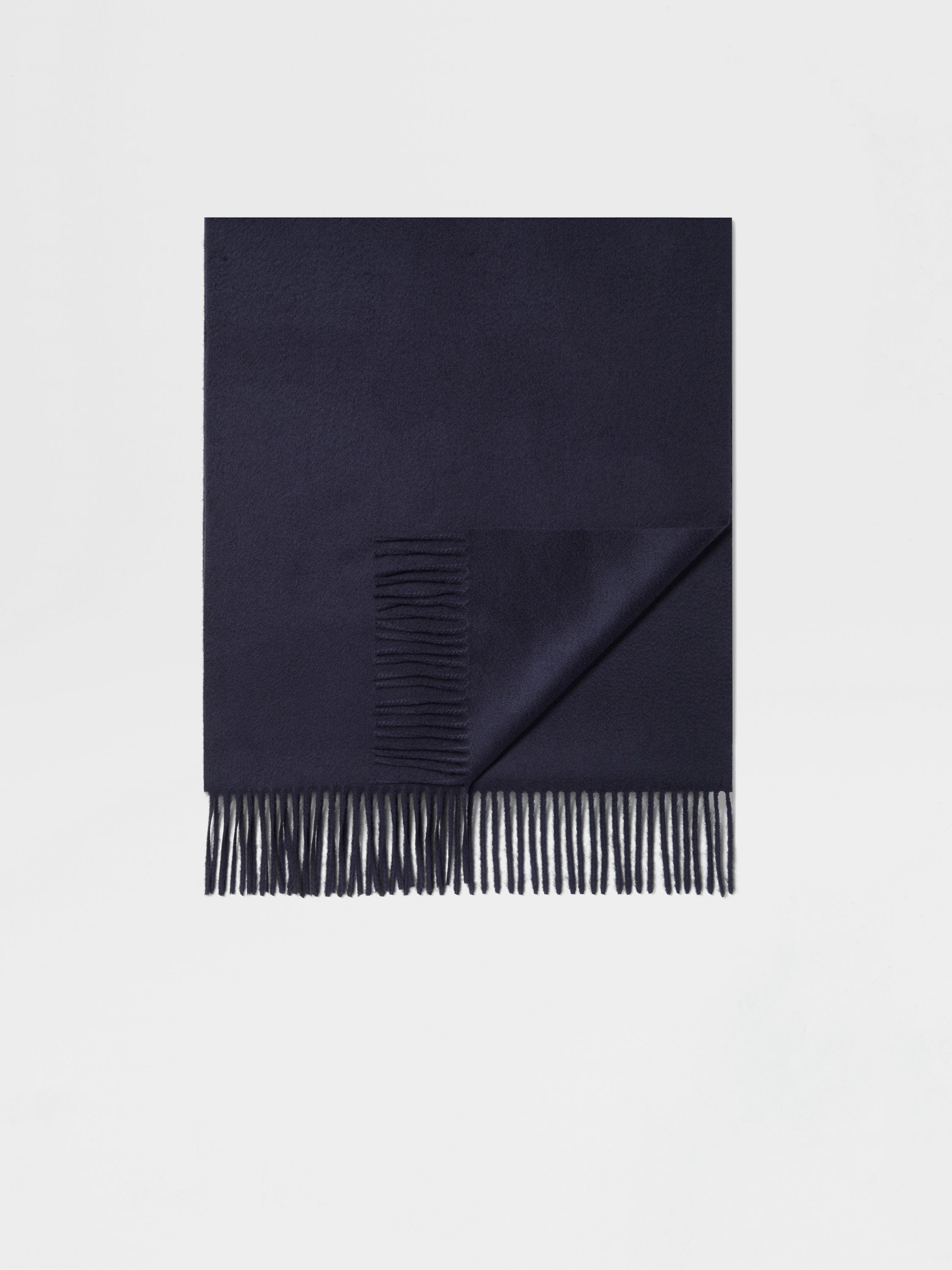 The dark blue Oasi Cashmere scarf is finished off with long fringes. INFO Enjoy Zegna's uncompromising quality standards throughout the seasons: the dark blue Oasi Cashmere scarf blocks out the cold thanks to one of the brand's softest and most exclusive materials. This lush cashmere scarf is presented in a solid colorway and trimmed with fringed borders. It is signed off with the tonal leather Zegna 232 Road Brand Mark. PRODUCT CODE E7L41SA8-26N-BL1 MATERIALS AND CARE 100% Cashmere The inspiration behind this Oasi Cashmere Collection garment was Born in Oasi Zegna, our 100km² natural territory and the home of our values. It's crafted from Oasi Cashmere fibres, which ZEGNA commits to certifying as traceable from 2024. The Oasi Cashmere Collection follows in the footsteps of our founder, who envisioned a vertically integrated system of producing textiles. Do not wash. Do not bleach. Do not tumble dry. Do not iron. Professional dry cleaning in tetrachloroethene and hydrocarbons, mild process. FIT AND PRODUCT DETAILS • Size: 180 x 36 cm / 70.9 x 14.2 in • Long fringes • Tonal leather Zegna 232 Road Brand Mark • Oasi Cashmere label • Made in Italy