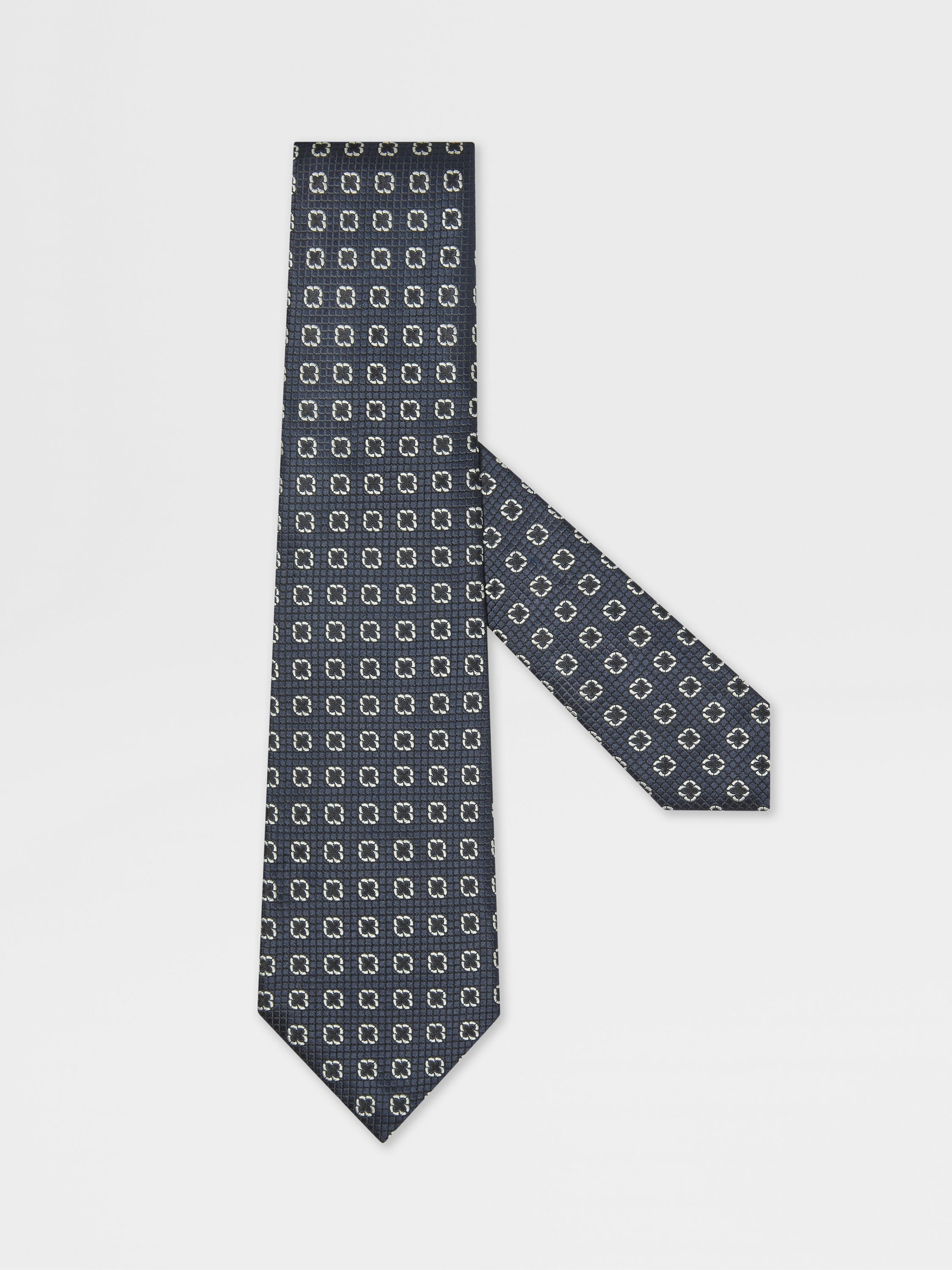 This dark blue jacquard silk tie stands out with a charming floral design. INFO Made from pure Mulberry silk, this dark blue jacquard tie is designed to complete your most refined looks. The sumptuous quality of natural fibers lends a rich dimension to its elegant floral pattern. PRODUCT CODE Z2C81TA2-1PC-BL1 MATERIALS AND CARE Main body: 100% Mulberry Silk Lining: 100% Mulberry Silk Do not wash. Do not bleach. Do not tumble dry. Do not iron. Professional dry cleaning in tetrachloroethene and hydrocarbons, mild process. FIT AND PRODUCT DETAILS • Blade width: 8 cm / 3.1 in • Flower jacquard pattern