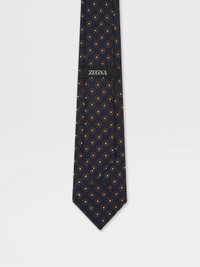 This dark blue tie is crafted from pure silk with a geometric floral pattern. INFO Updating a floral design with a modern geometric twist, this dark blue jacquard tie is an office-to-evening essential. Crafted from pure mulberry silk. PRODUCT CODE Z9C22TA9-1PC-BL1 MATERIALS AND CARE Main body: 100% Mulberry Silk Lining: 100% Mulberry Silk Do not wash. Do not bleach. Do not tumble dry. Do not iron. Professional dry cleaning in tetrachloroethene and hydrocarbons, mild process. FIT AND PRODUCT DETAILS • Blade width: 8 cm / 3.1 in • Geometric floral jacquard pattern • Made in Italy