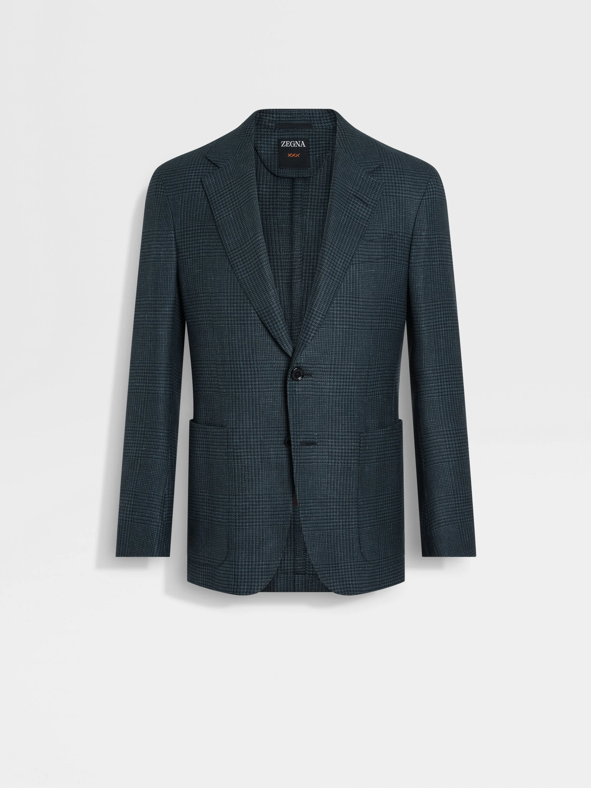 This elegant jacket is made from a refined cashmere-silk-linen blend in a dark green colorway. INFO A sublime blend of cashmere, silk and linen provides a sublime backdrop for a timeless Prince of Wales pattern in a dark green palette. Styled with notch lapels and patch pockets, this jacket delivers impeccable elegance for formal occasions. PRODUCT CODE 259562A2-10JCN0 MATERIALS AND CARE 64% Cashmere; 23% Mulberry Silk; 13% Linen Do not wash. Do not bleach. Do not tumble dry. Iron at max 110°C. Professional dry cleaning in tetrachloroethene and hydrocarbons, mild process. FIT AND PRODUCT DETAILS • Regular fit • Tailoring jacket • Double vents • Notch lapels • Prince of Wales pattern • Button closure • Patch pockets • Deconstructed, canvas • Unlined • 75 cm length on size 48