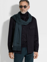 Complete endless looks with the natural charm of this dark green Oasi Cashmere scarf. INFO A cold-weather essential, reimagined with the authentic allure of ZEGNA's exclusive Oasi Cashmere. Presented in a charming dark green hue, this scarf is enriched with leather details. Detailed with our signature 232 Road Brand Mark on the matching pouch. PRODUCT CODE Z2L41SA2-26N-GN1 MATERIALS AND CARE Main body: 100% Cashmere Leather details: Calfskin The inspiration behind this Oasi Cashmere collection garment was born in Oasi Zegna, a 100km² natural territory and the home of our values. It's crafted from Oasi Cashmere fibres, made with 100% certified traceable fibres. The Oasi Cashmere collection follows in the footsteps of our Founder, who envisioned a vertically integrated system of producing textiles. Do not wash. Do not bleach. Do not tumble dry. Do not iron. Professional dry cleaning in tetrachloroethene and hydrocarbons, mild process. FIT AND PRODUCT DETAILS • Size: 180 x 36 cm / 70.9 x 14.2 in • Leather details • ZEGNA 232 Road Brand Mark on the pouch