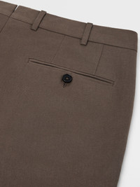 Zegna's exclusive Oasi Lino Blue Flower fabric lends these dark taupe pants a unique finish. INFO These pants are an emblem of Zegna's sartorial legacy, elevating a dark taupe colorway with the subtle frosting of the brand's Oasi Lino Blue Flower fabric. Their flat-fronted silhouette promises a sleek look, elevated with slanted pockets. PRODUCT CODE 973F41A9-75N5N2 MATERIALS AND CARE 100% Linen Oasi Lino Blue Flower is inspired by the rare and short-lived blooms of the flax plant. It's crafted exclusively from exceptionally fine European linen, which imbue it with impeccable smoothness and a unique frosted appearance. Made exclusively from fibres that are 100% traceable from 2024, Oasi Lino follows in the footsteps of our founder, who envisioned a vertically integrated system of producing textiles. Do not wash. Do not bleach. Do not tumble dry. Professional dry cleaning in tetrachloroethene and hydrocarbons, mild process. FIT AND PRODUCT DETAILS • Slim fit • Tailoring pants • 19 cm hem • Hook, zip and button closure • Slanted pockets • Flat front style Pants hems are unfinished. You can bring your pants to our boutiques for alterations.