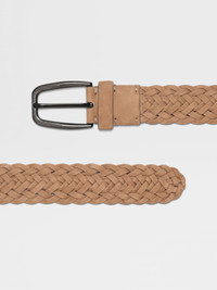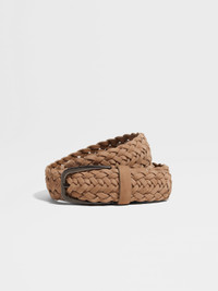 Embrace Zegna's vision of luxury leisurewear with this dust beige braided leather belt. INFO This braided belt adds a refined touch to smart and casual ensembles, crafted from soft leather. A glazed ultrablack metal buckle contrasts elegantly with its dust beige colorway. PRODUCT CODE LHTPF-B021AZ-DTS MATERIALS AND CARE Calf Leather Protect from moisture and do not place near direct sources of heat. Clean with a soft cloth. Do not use solvents or polishes. Avoid contact with cosmetics, perfumes and hand lotions and sanitizers. Store in a cool, dry, well-ventilated place. Stow in the included dust bag when not in use. FIT AND PRODUCT DETAILS • Braided calf leather • Metal buckle with glazed ultrablack finish • Fixed belt • Made in Italy • Width: 3.2 cm / 1.2 in