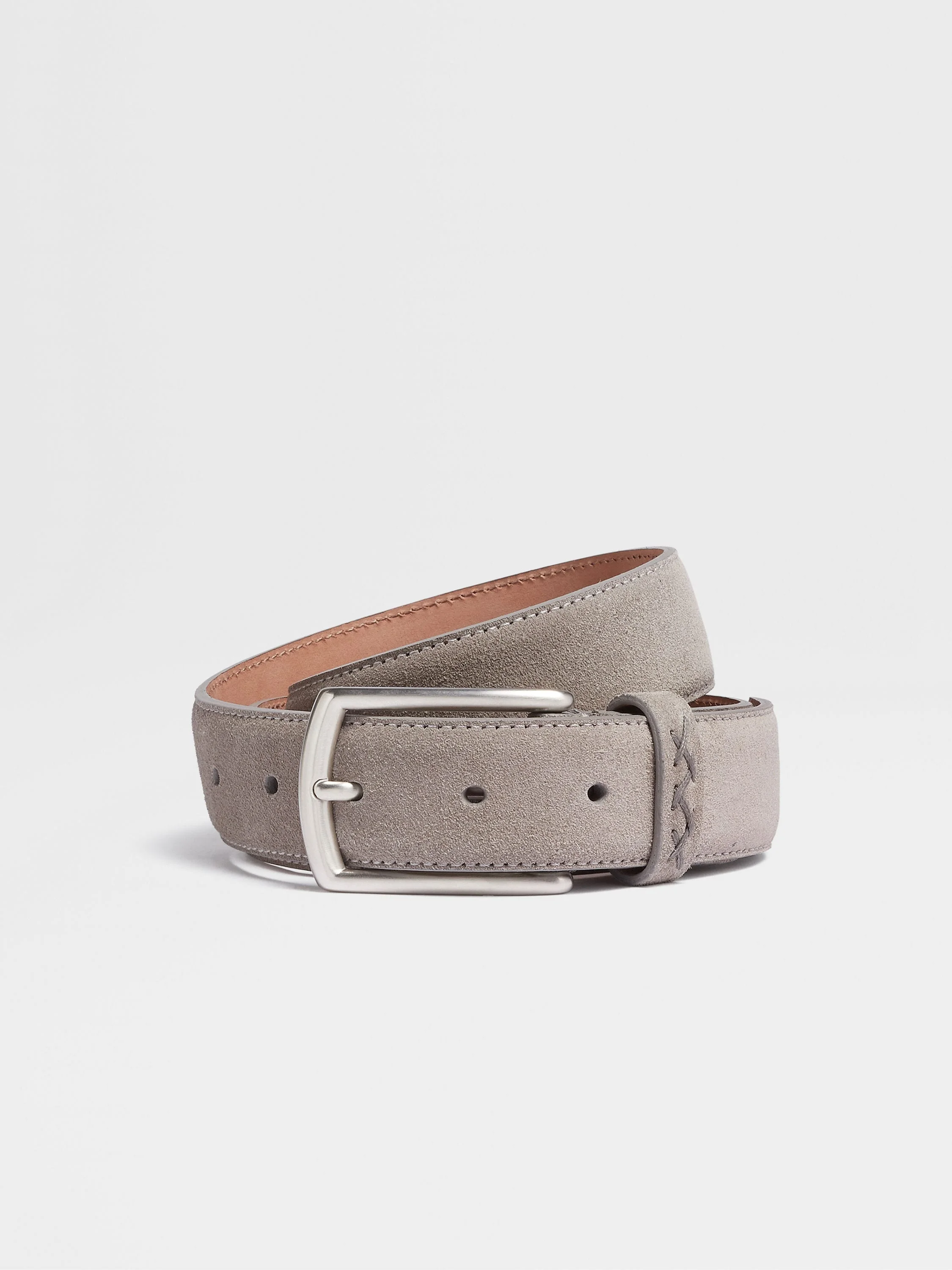 Enjoy a softer take on masculine elegance with the grey mélange suede belt. INFO More relaxed than leather but no less sophisticated, the grey mélange suede belt completes Zegna's vision of luxury leisurewear. The premium material is set off with a glazed silver buckle featuring the iconic Triple Stitch™ signature on the loop. PRODUCT CODE LHCAS-B014AZ-GME MATERIALS AND CARE Suede Protect from moisture and do not place near direct sources of heat. Clean with a brush designed for use with suede. Avoid contact with cosmetics, perfumes and hand lotions and sanitizers. Store in a cool, dry, well-ventilated place. Stow in the included dust bag when not in use. FIT AND PRODUCT DETAILS • Triple Stitch™ buckle • Metal buckle with glazed silver finish • Width: 3.2 cm / 1.2 in • Free-sized belt • Natural lining • XXX stitches on the loop • Made in Italy