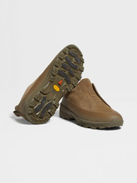 The khaki suede Triple Stitch™ Monte sneakers are fitted with advanced Vibram® soles for superior grip. INFO The khaki suede Triple Stitch™ Monte sneaker is a very versatile shoe, perfect all year round. The brand’s signature triple-crossed elastic detail ensures an easy slip-on fit, while evoking the traditional hand-stitching of tailored jackets to symbolize and honor Zegna’s legacy of fine craftsmanship. This elegant, casual shoe is lined with leather. MONTE (mon·te) - ITALIAN FOR 'MOUNT' Inspired by the trails of Oasi Zegna, the hiking-inspired Triple Stitch™ Monte Shoes are ideal for journeys at any time of year. Shaped to a versatile low-top silhouette and hallmarked with a trio of crosses inspired by the handmade stitches found on our Jackets, they’re set on an innovative sole — providing increased traction during outdoor pursuits. PRODUCT CODE LHNEL-S7008Z-MDD MATERIALS AND CARE Suede; Calf Leather Clean with a brush designed for use with suede. Avoid contact with abrasives, water and substances containing alcohol, such as perfumes, solvents, etc. In case of contact with water, it is important to let the footwear dry completely before cleaning. Clean the rubber soles with a product specifically designed for cleaning rubber. Store in the included dust bag in a cool, dry place. FIT AND PRODUCT DETAILS • Crossed elastics • Dark Foliage leather lining • Tonal Vibram® advanced grip sole • Zegna 232 Road Brand Mark on the heel tab • Sanitized® removable footbed • Made in Italy • Comes with a shoe bag We want every pair of Triple Stitch™ sneakers to fit perfectly anytime, anywhere, anyplace. To find your perfect fit, we recommend going down a half-size compared to your usual shoe size. Please note that Zegna uses UK sizing. For further information, please contact us via our customer service channels or by visiting the nearest Zegna flagship store.